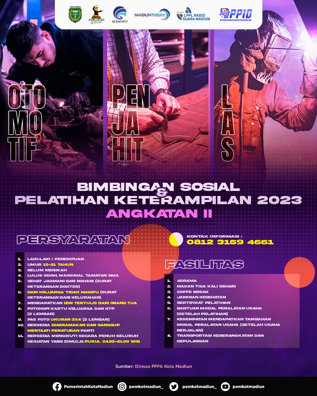 Kepala Bidang Rehabilitasi Sosial Dinas Sosial, Pemberdayaan Perempuan, dan Perlindungan Anak (Dinsos PPPA) Kota Madiun Esti Handayani menyebut program pelatihan tersebut setidaknya dibuka dua kali dalam setahun. Nah, saat ini sudah memasuki angkatan kedua. Peserta yang memenuhi persyaratan dan memang benar-benar berminat bisa mendaftar ke Dinsos PPPA Kota Madiun.