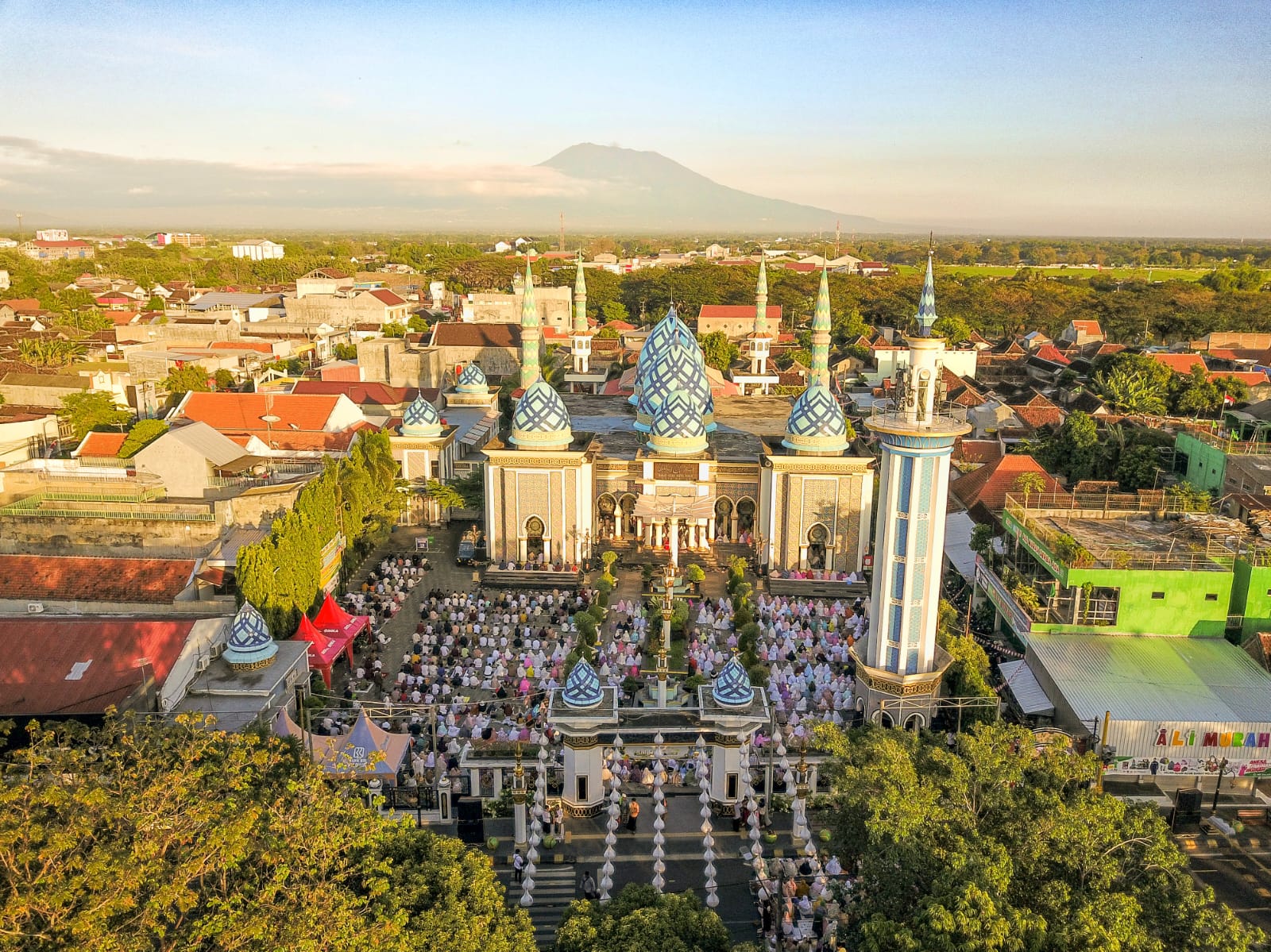 Jamaah mengikuti gelaran Salat Idul Adha di Masjid Baitul Hakim Kota Madiun tampak khidmat lagi khusyuk, Kamis (29/6). Tampak ratusan jamaah memenuhi masjid hingga membludak sampai di halaman. Bahkan, sebagian jamaah menggunakan jalan hingga trotoar Alun-alun sisi barat. Kendati begitu, Salat Ied berlangsung tertib dari awal hingga usai gelaran. (ws hendro/agi/madiuntoday)