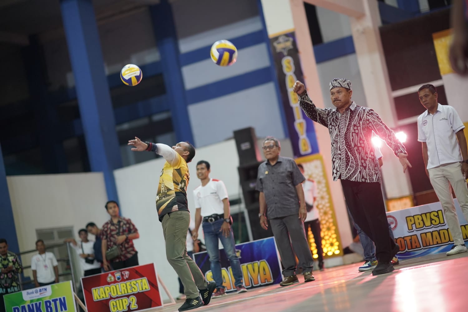 MADIUN - Wali Kota Maidi membuka acara open tournament volleyball Kapolres Madiun Kota Cup, Sabtu (1/7) malam di Gor Wilis Kota Madiun.