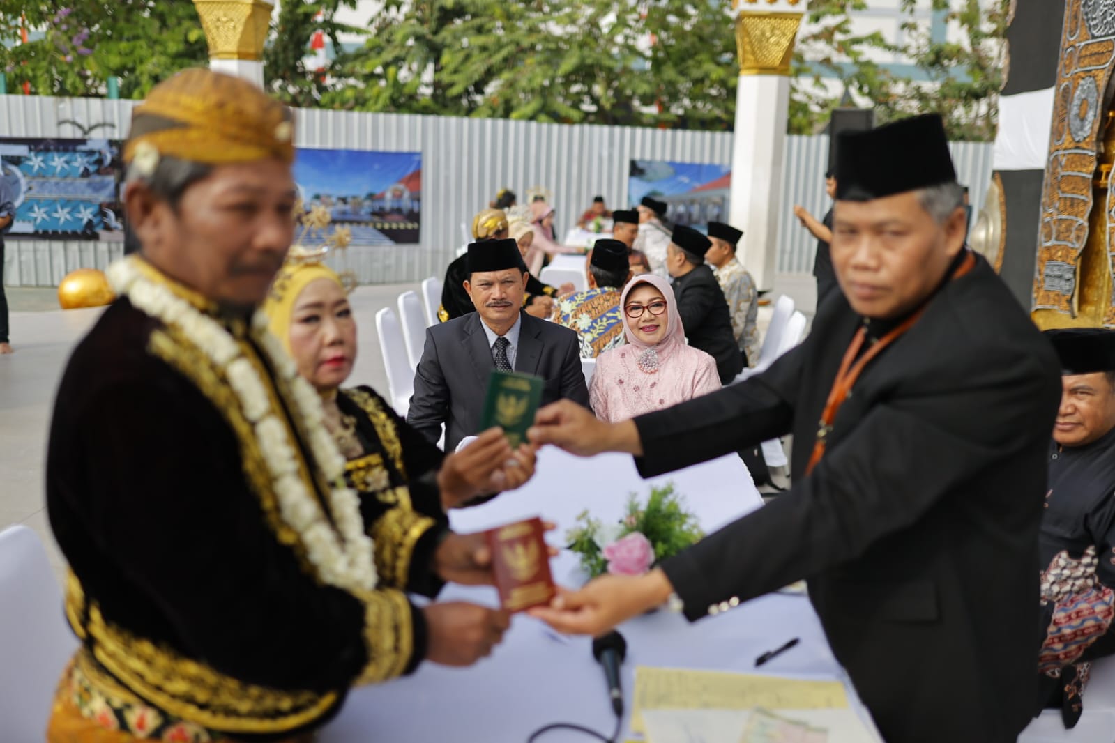 Dalam event Medioen Mantu ini, 18 pasangan mendapatkan fasilitas berupa gaun pengantin beserta rias, pelaminan, hingga mahar pernikahan berupa uang tunai Rp 500 ribu dan seperangkat alat salat. (Ws Hendro/irs/diskominfo)