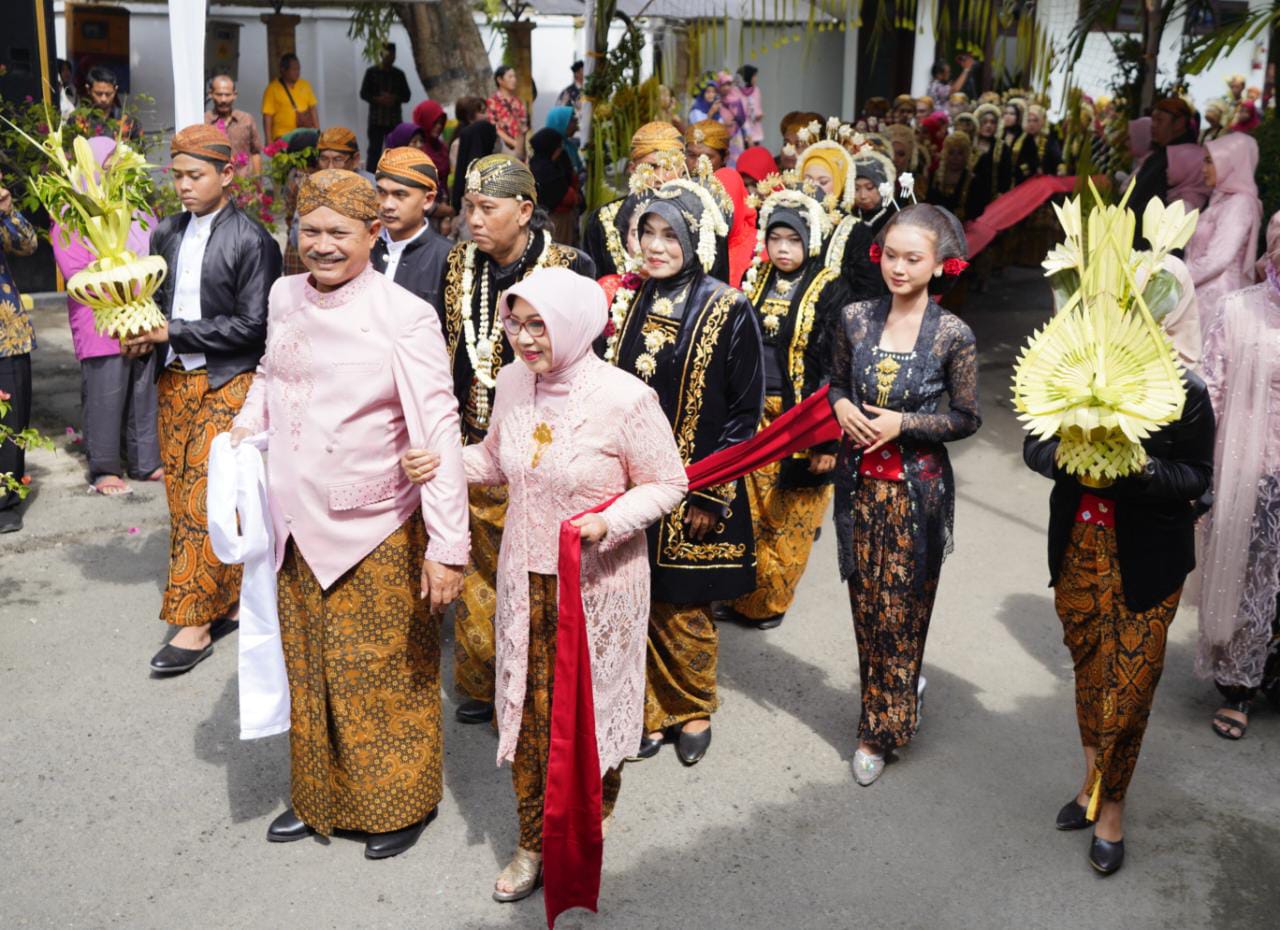 Rangkaian prosesi temu manten program Medioen Mantu berlangsung khidmat. 18 pasangan pengantin pun dengan seksama menjalani ritual yang dipimpin oleh Wali Kota Madiun Maidi. Mulai dari balangan gantal, ngidak endhog, dulangan, sinduran, hingga sungkeman yang terlaksana di rumah dinas wali kota, Jalan Pahlawan, Kota Madiun, Sabtu (8/7). Acara juga dimeriahkan dengan penampilan spesial Hari Gambyong dan doa bersama yang dipimpin oleh Ketua MUI Kota Madiun, KH. Sutoyo. Selain fasilitas berupa ubo rampe pernikahan hingga mas kawin, 18 pasang pengantin juga mendapatkan tiket menginap gratis di hotel berbintang. (Ws Hendro/rams/madiuntoday)