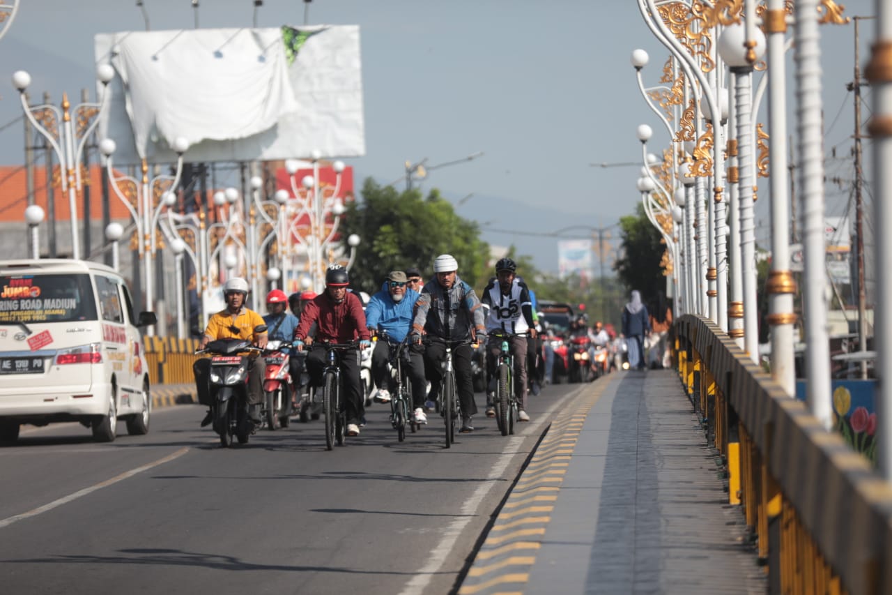 MADIUN – Giat bersepeda pagi kembali dilakukan Wali Kota Maidi. Orang Nomor satu di Kota Pendekar itu melaksanakan gowes sembari menghadiri sejumlah kegiatan. Kali ini, wali kota melaksanakan gowes sembari menyalurkan bantuan sosial bagi lansia ngebrok dan juga panen raya bawang merah.