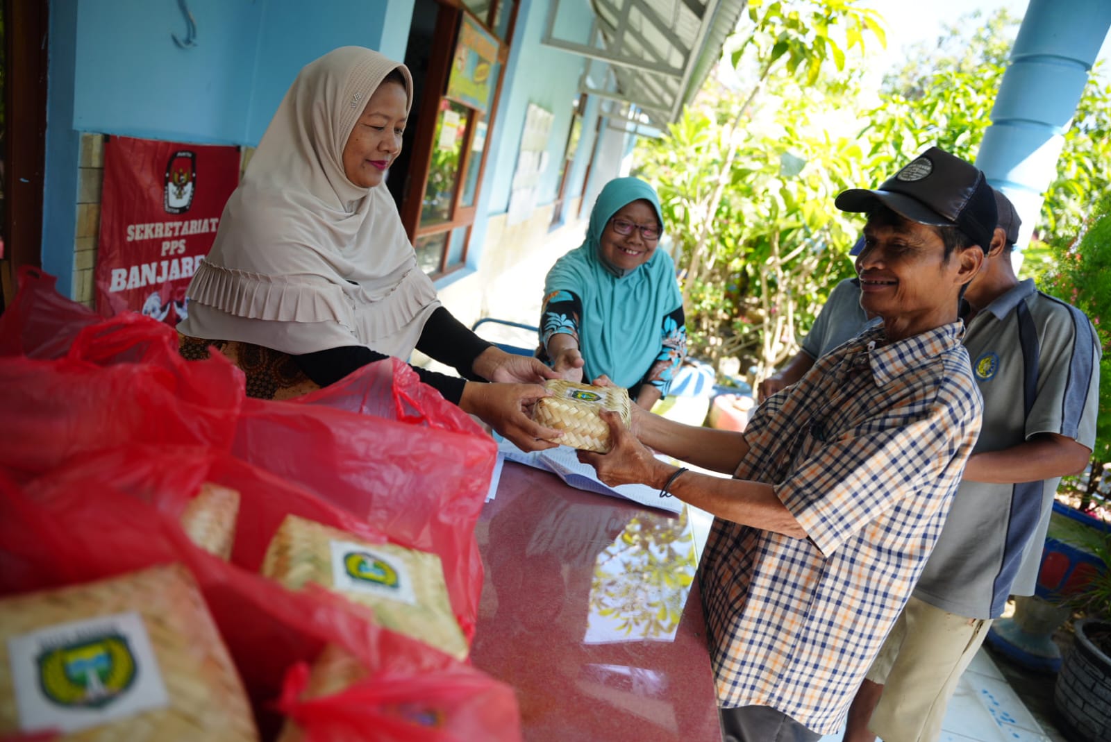 Dalam pembagian kali ini, daging sengaja dikemas dengan besek. Harapannya untuk menjaga kualitas daging dan ikut mengurangi penggunaan sampah plastik.