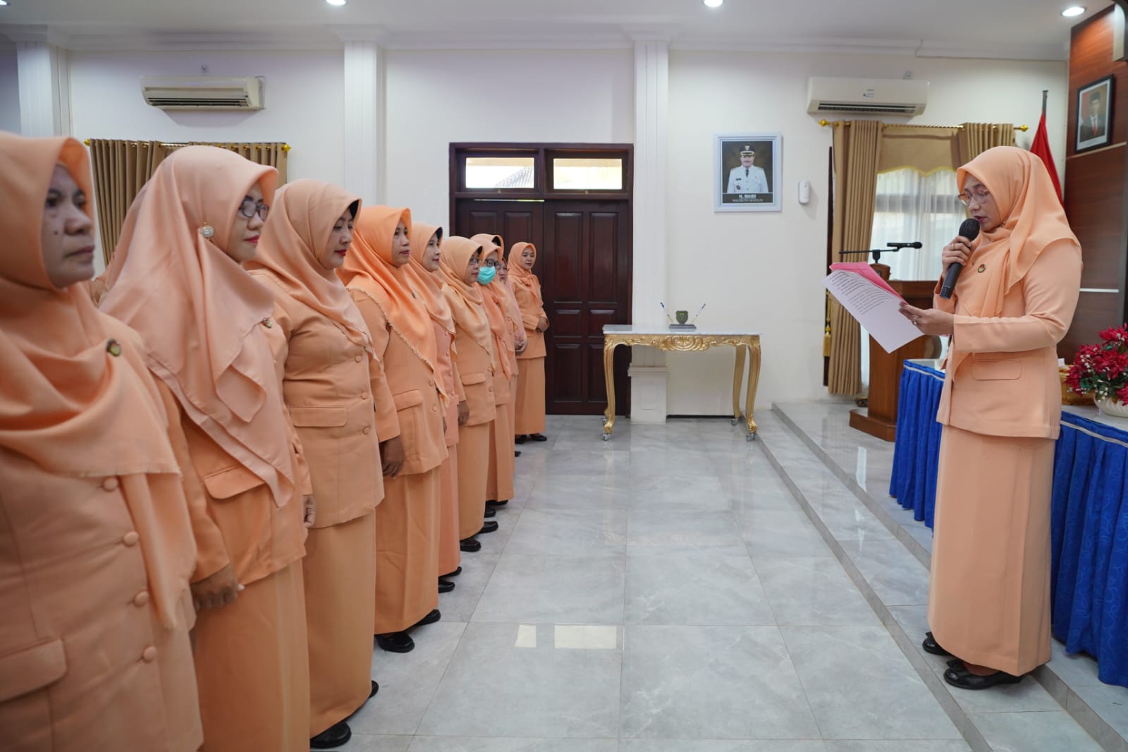 ‘’Hari ini adalah pelantikan serah terima jabatan kepada ketua unsur pelaksana Dharma Wanita Persatuan Kota Madiun. Totalnya, ada 12 orang yang kita lantik,’’ katanya.