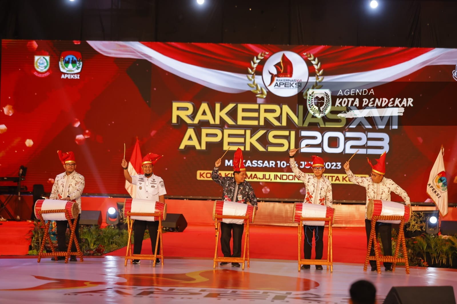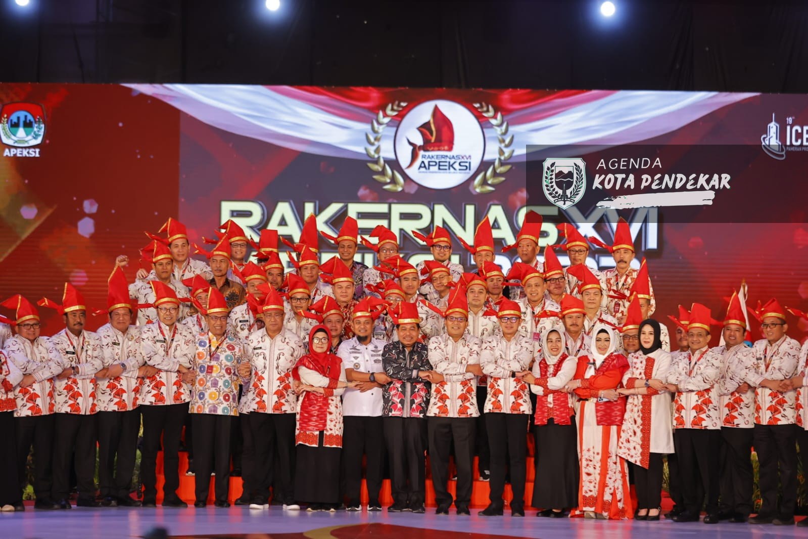 MAKASSAR – Rapat Kerja Nasional (Rakernas) XVI Asosiasi Pemerintah Kota Seluruh Indonesia (Apeksi) 2023 resmi dibuka di Upperhills Convention Center, Kota Makassar, Sulawesi Selatan (Sulsel), Rabu (12/7). Rakernas bertajuk "Kota Kita Maju, Indonesia Kita Kuat" tersebut dihadiri oleh 88 wali kota serta pejabat pemerintahan dari seluruh Indonesia.