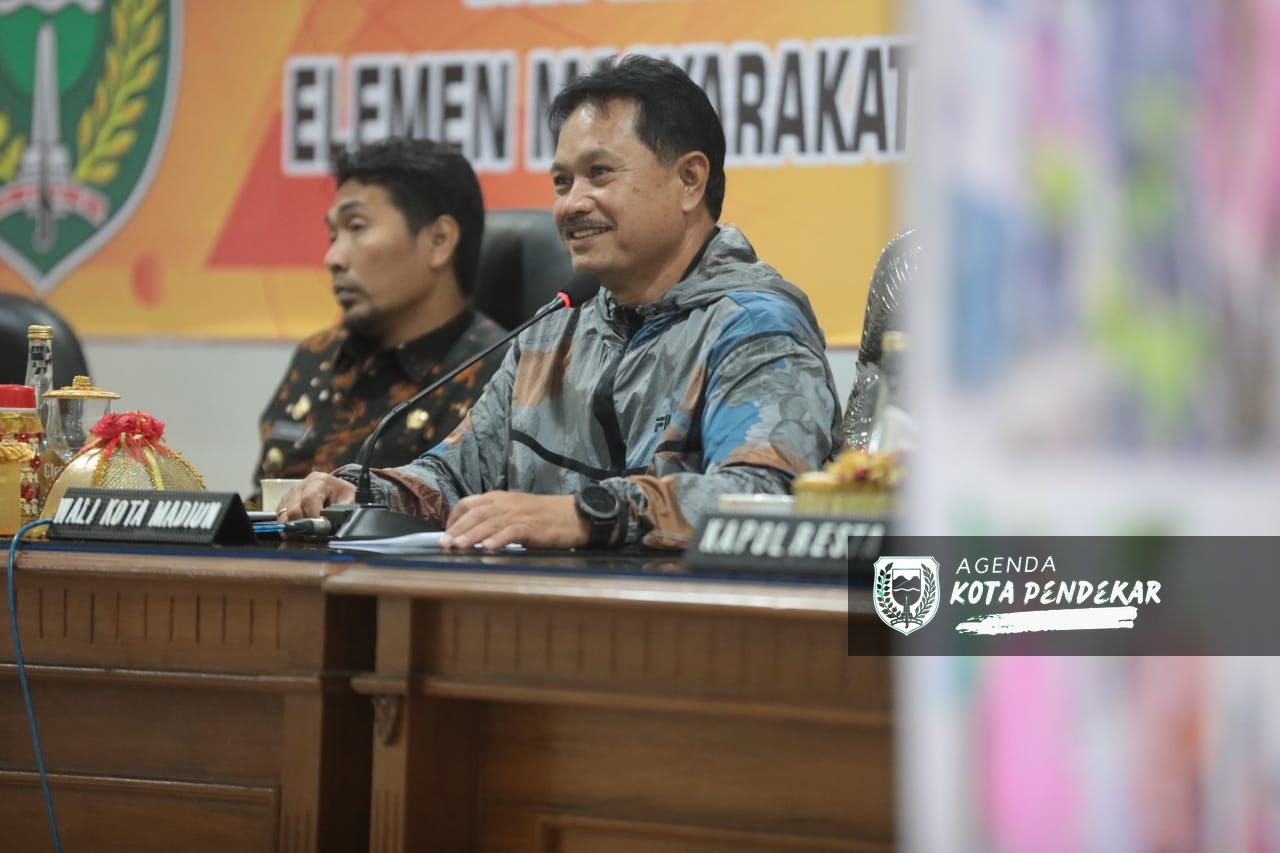 Hadir sebagai narasumber, Wali Kota Madiun Maidi mengingatkan kembali pentingnya menjaga kondusifitas selama Suro. ‘’Aman itu mahal harganya,’’ ujar orang nomor satu di Kota Pendekar itu.