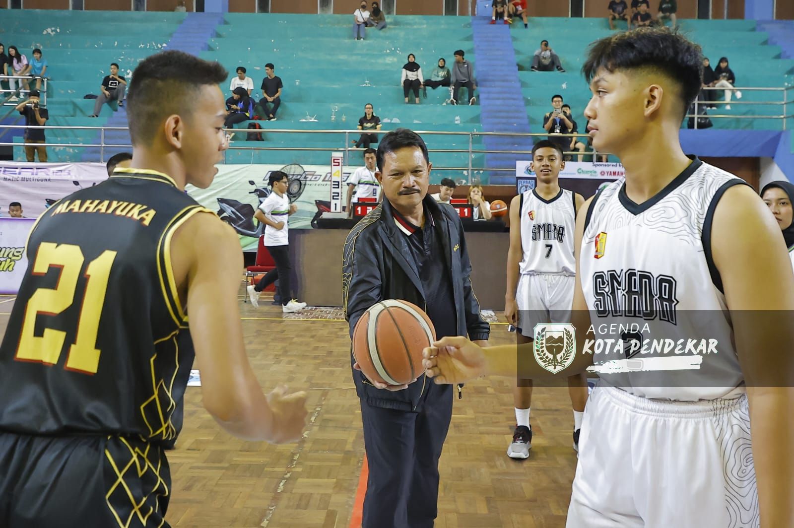 Prosesi pembukaan kompetisi diawali dengan lemparan bola basket dari wali kota kepada peserta.