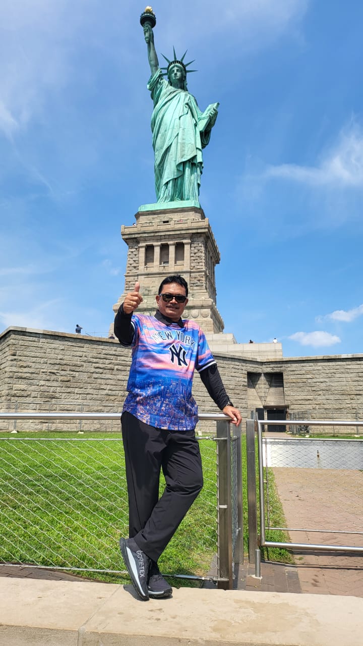 NEW YORK, USA – Lawatan Wali Kota Madiun Maidi di negeri Paman Sam sampai di Kota New York. Terdapat sejumlah agenda penting di kota Big Apple itu. Salah satunya berkunjung ke United Nations. Namun, di sela kunjungan kerja rangkaian program Certified Senior Eksekutif Study dalam bidang Regional and Urban Development Strategy tersebut, orang nomor satu di Kota Pendekar itu menyempatkan untuk mengunjungi patung paling ikonik di sana. Apa lagi kalau bukan Patung Liberty.