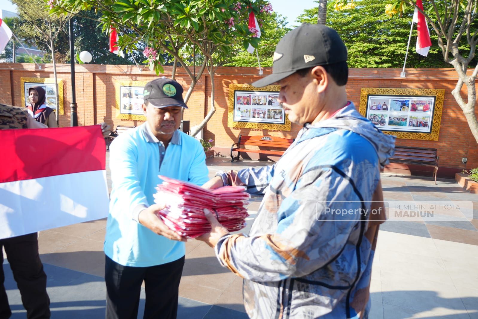 Bendera tersebut diberikan wali kota kepada para anggota pramuka Kwartir Cabang (Kwarcab) Gerakan Pramuka Kota Madiun untuk kemudian dibagikan langsung ke masyarakat yang ada di sekitar Pahlawan Street Center.