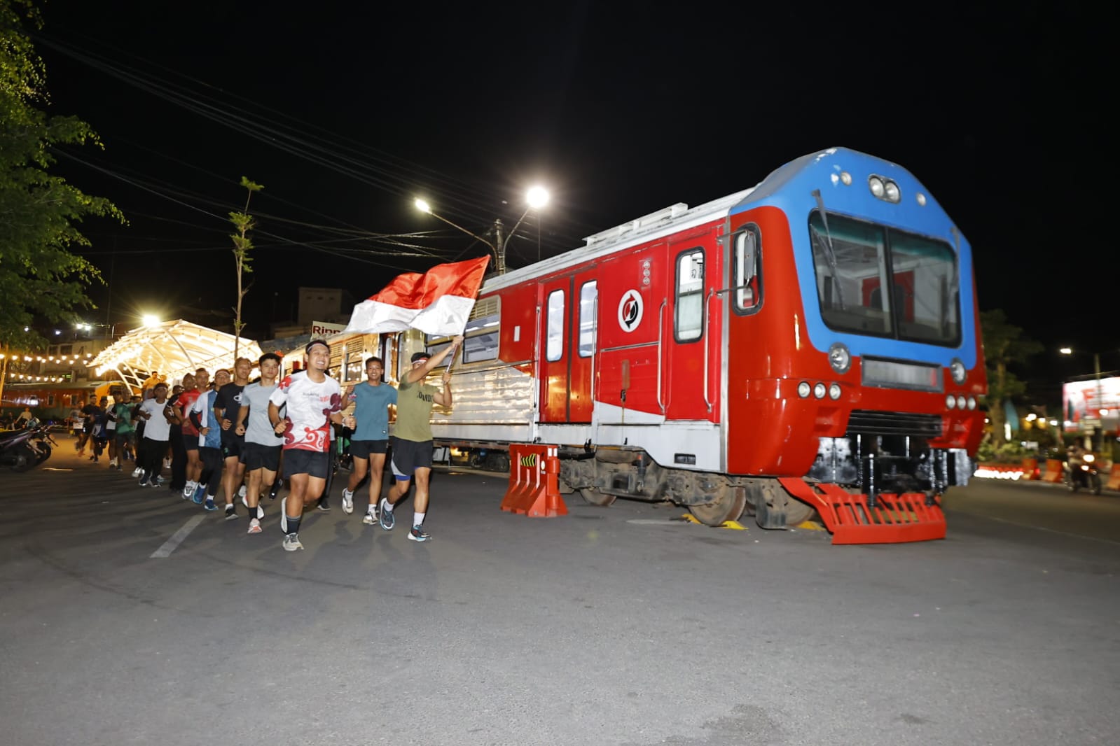 Semalam, tepatnya Rabu (16/8) puluhan orang berlari keliling kota mengenakan atribut merah putih, juga kibarkan bendera selama berlari.