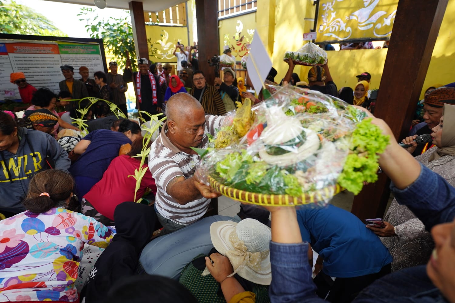 Adapun dalam arak-arakan tersebut warga membawa tumpeng dan hasil bumi lainnya. Kemudian, menggelar doa bersama di pendopo makam. Selanjutnya, tumpeng dan hasil bumi dibagikan kepada masyarakat.