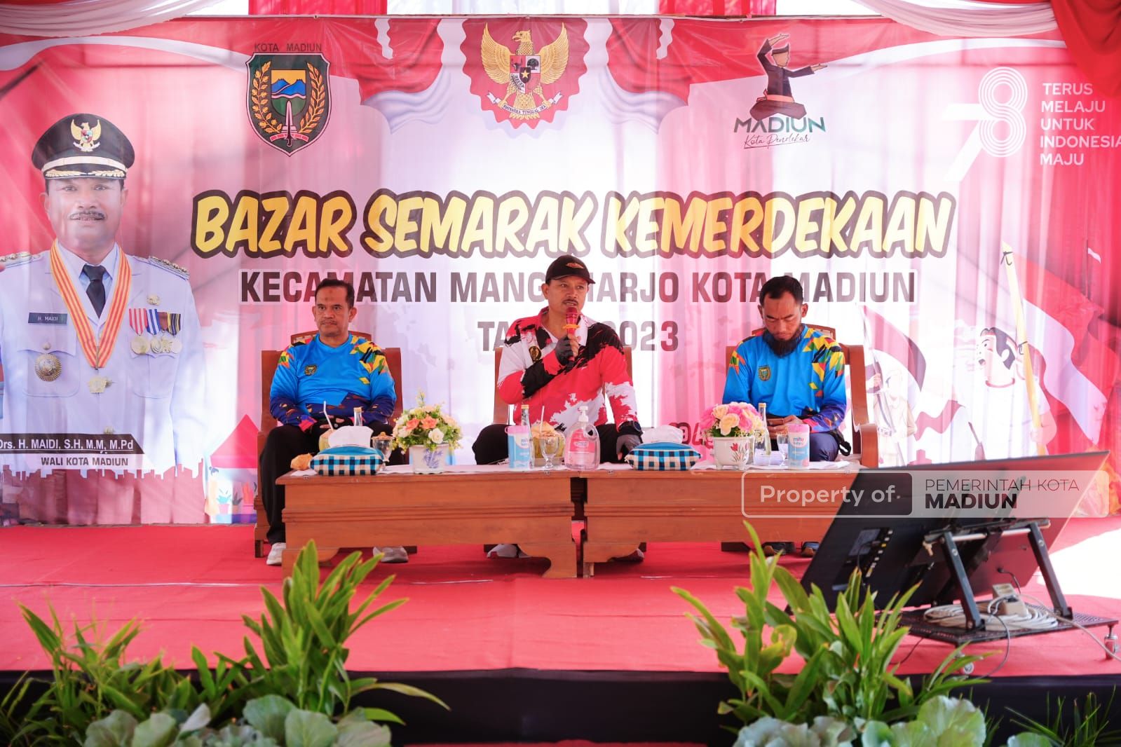 MADIUN – Kegiatan bernuanasa kemerdekaan masih terus tersaji di Kota Madiun. Terbaru ada senam dan bazar yang berlangsung di Kecamatan Manguharjo, Sabtu (19/8). Kegiatan makin seru lantaran juga dihadiri Wali Kota Madiun, Maidi. Orang nomor satu di Kota Pendekar tersebut pun mengapresiasi hadirnya kegiatan.