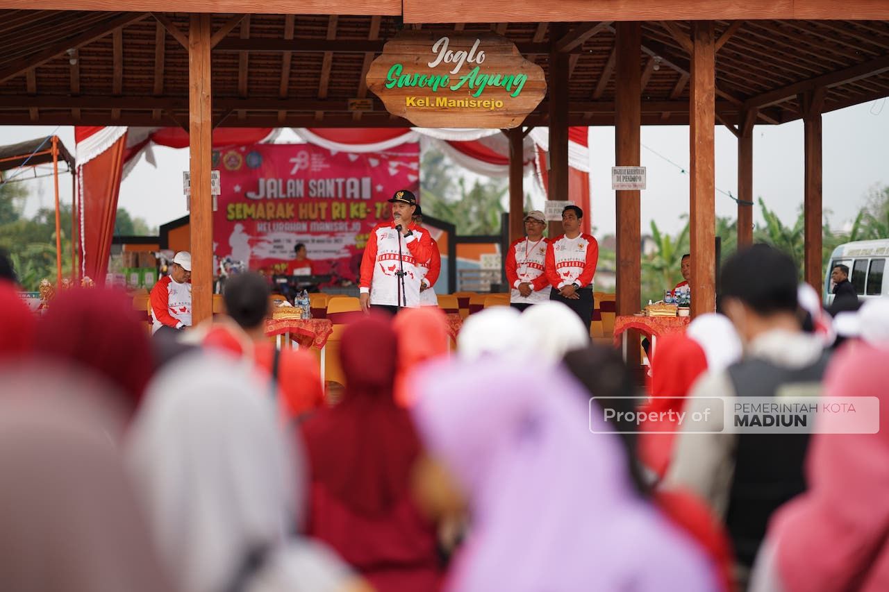 Kegiatan jalan sehat dilaksanakan oleh masyarakat di Kota Madiun sebagai bagian dari rangkaian acara memperingati Hari Ulang Tahun ke-78 Republik Indonesia.