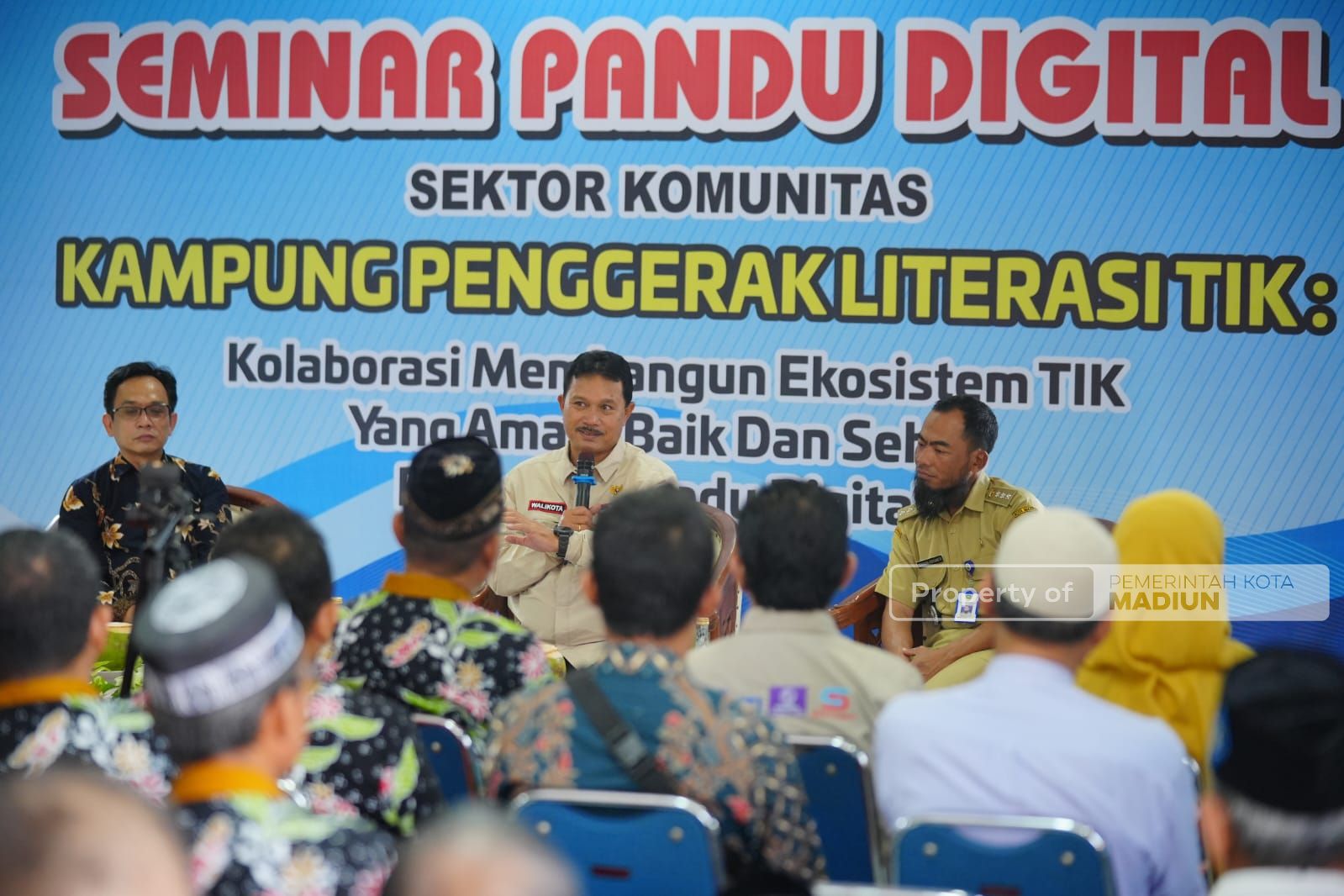 MADIUN – Penguatan literasi digital terus dilakukan Pemerintah Kota Madiun. Kali seminar Pandu Digital digelar, Selasa (22/8). Bertempat di aula Kelurahan Pangongangan, kegiatan dibuka Wali Kota Madiun, Maidi. Orang nomor satu di Kota Pendekar itu menyampaikan digitalisasi sudah merupakan kebutuhan. Karenanya, digitalisasi tersebut penting untuk senantiasa didekatkan kepada masyarakat.