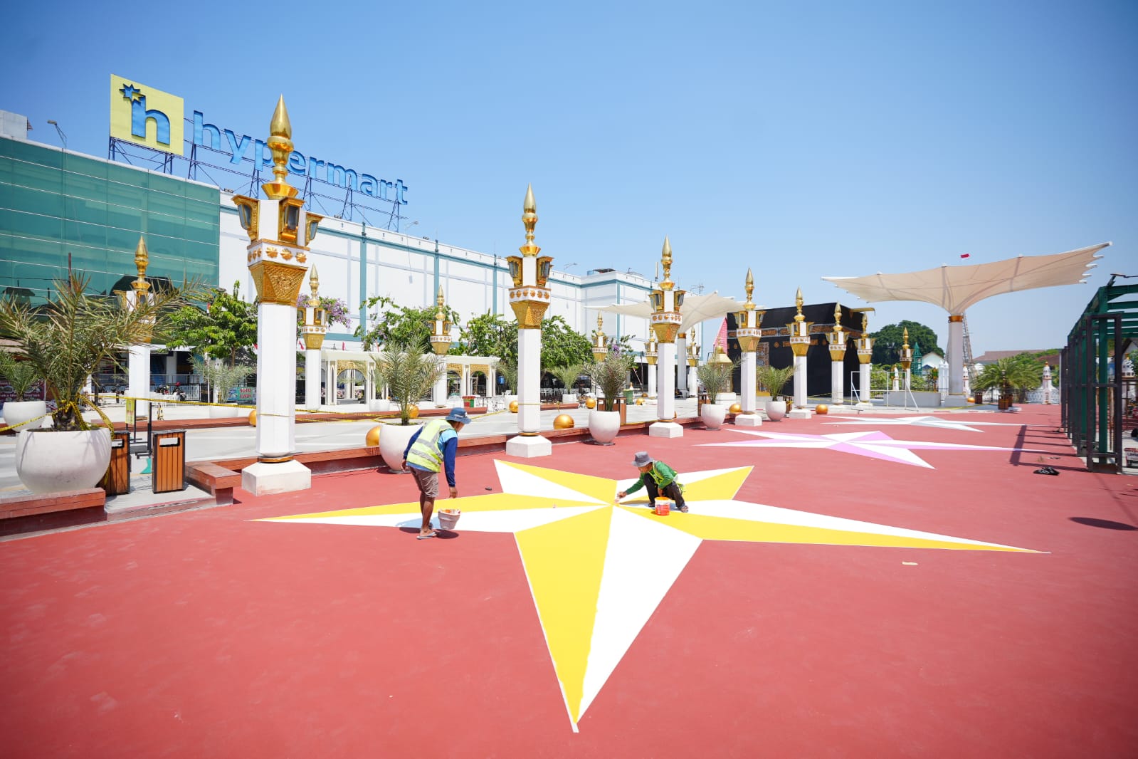 MADIUN - Kawasan Pahlawan Religi Center (PRC) Kota Madiun terus dibenahi untuk meningkatkan daya tarik wisata. Salah satunya, melalui proses pengecatan lantai dengan warna yang cerah.