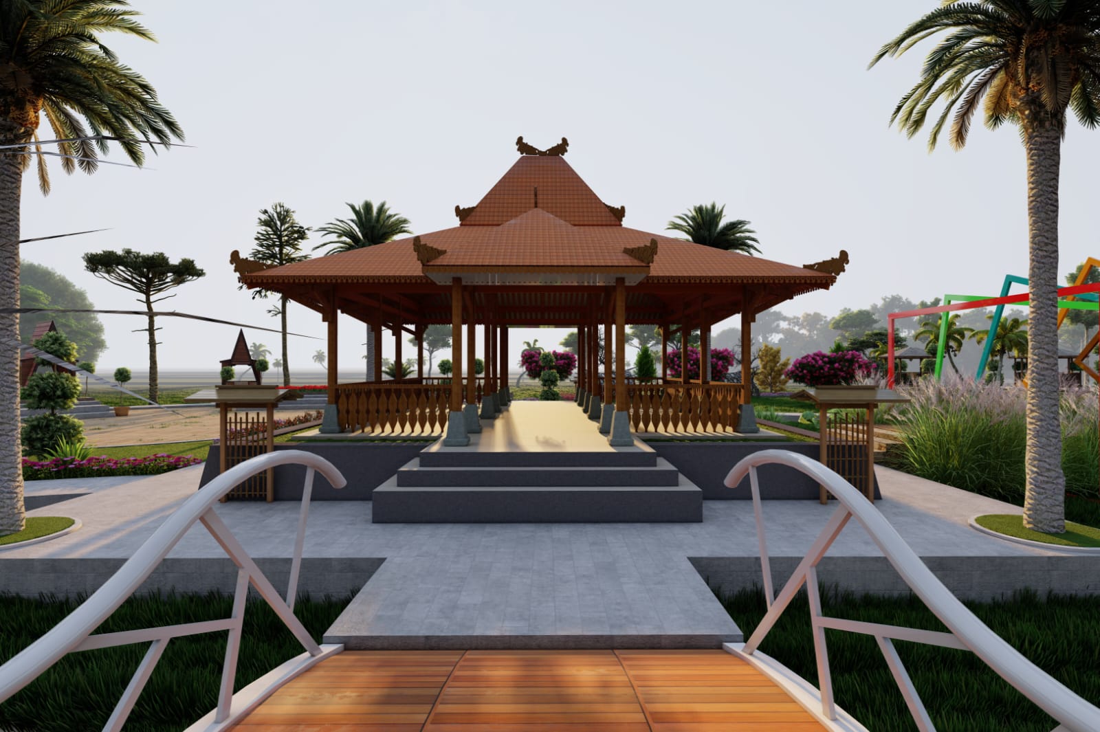 Pendopo tersebut nantinya berukuran 10x10 meter persegi. Namanya juga taman, pendopo tersebut juga akan ditambahkan pepohonan dan tanaman bunga. Ada juga semacam jembatan untuk penghubung dengan pembangunan pertama. Ya, keberadaan pendopo ini memang ada di sebelah utara bangunan yang sudah ada. Andi menyebut pengembangan Taman Sedoro tersebut memiliki nilai kontrak Rp 306 juta.