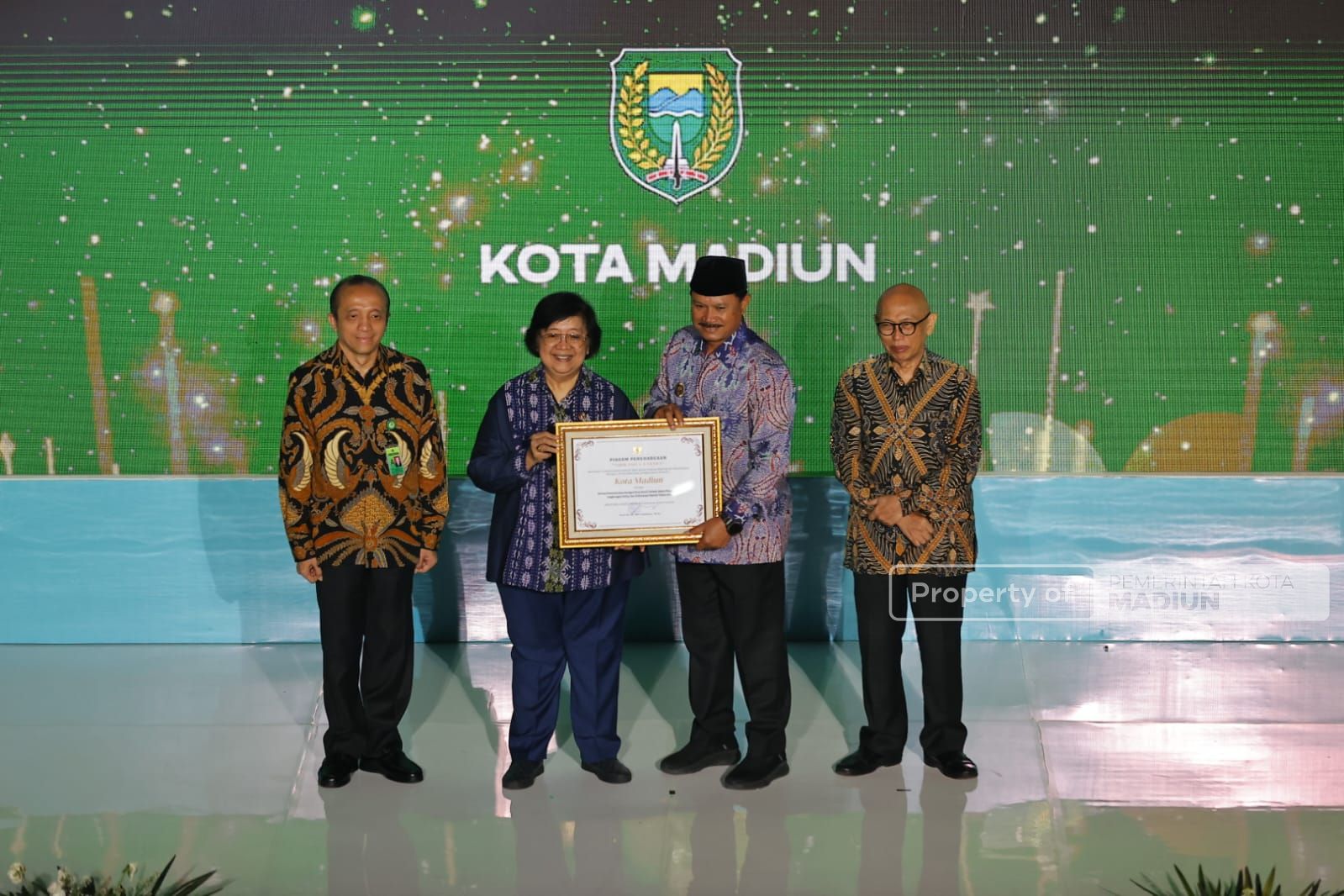 Penganugerahan Penghargaan Green Leadership ‘’Nirwasita Tantra’’ Tahun 2022 itu berlangsung di Auditorium Dr. Ir. Soedjarwo, Gedung Manggala Wanabakti Kementerian LHK pada Selasa (29/8). Penghargaan diberikan secara langsung oleh Menteri LHK Siti Nurbaya Bakar kepada Wali Kota Madiun Maidi.