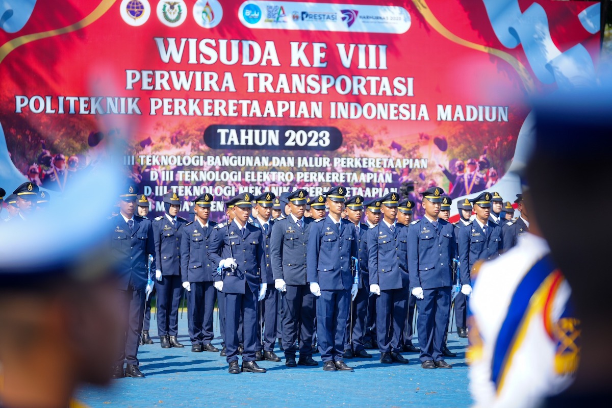 MADIUN - Politeknik Perkeretaapian Indonesia (PPI) Madiun konsisten mencetak lulusan terbaik di bidang perkeretaapian, Jumat (1/9) PPI menggelar upacara wisuda dan sidang senat terbuka untuk angkatan VII tahun 2023.