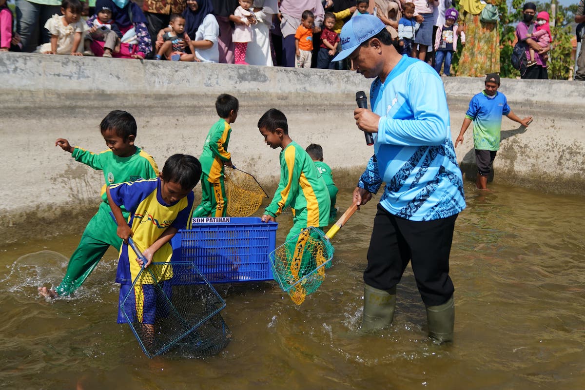 Meriahkan Event Gemarikan, Wali Kota Ajak Siswa Tangkap Ikan Di Kolam