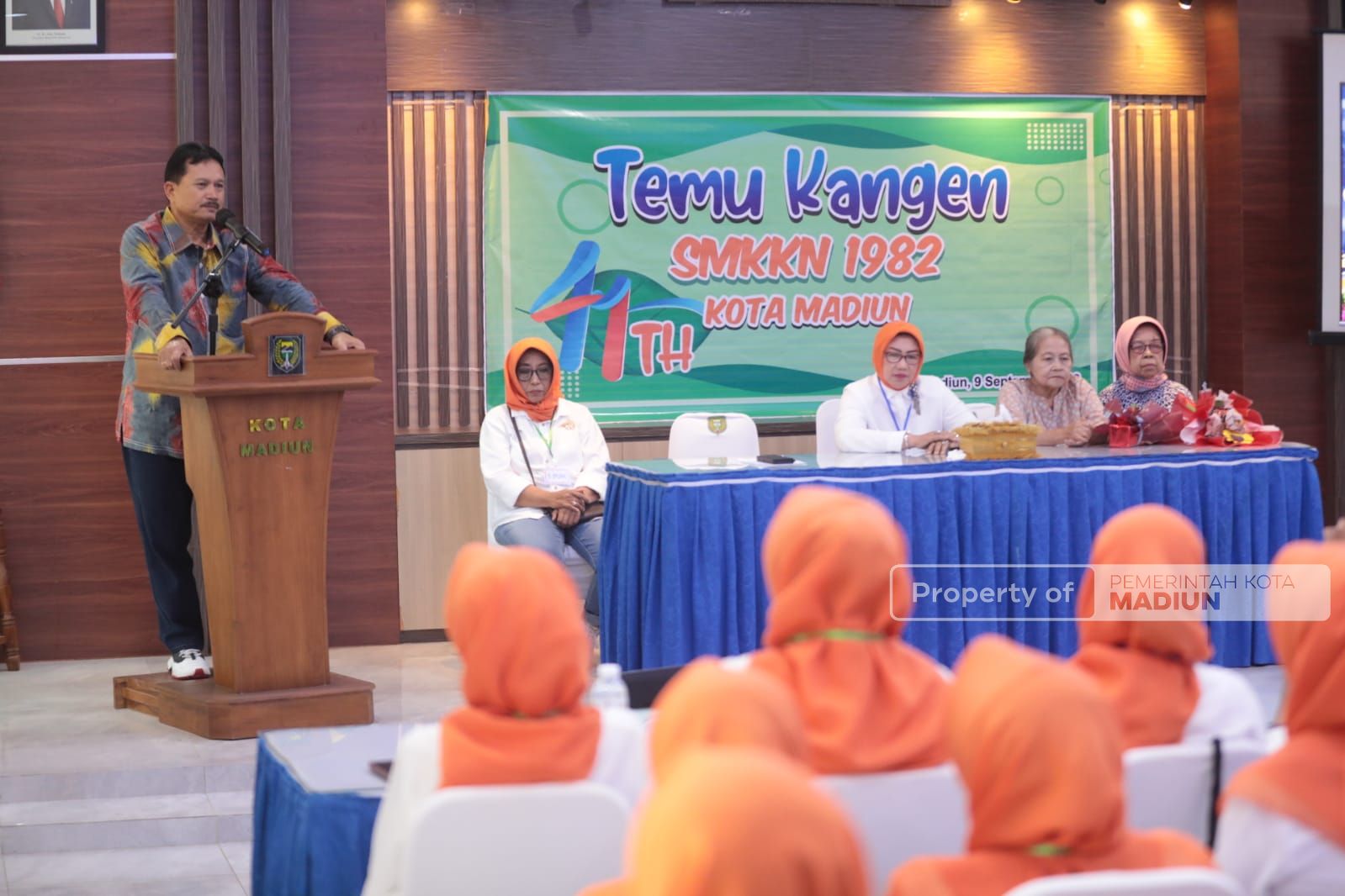 MADIUN - Alumni SMKKN (sekarang SMKN 4) Kota Madiun tahun 1982 menggelar reuni temu kangen di Rumah Dinas Wali Kota, Jalan Pahlawan, Sabtu (9/9).