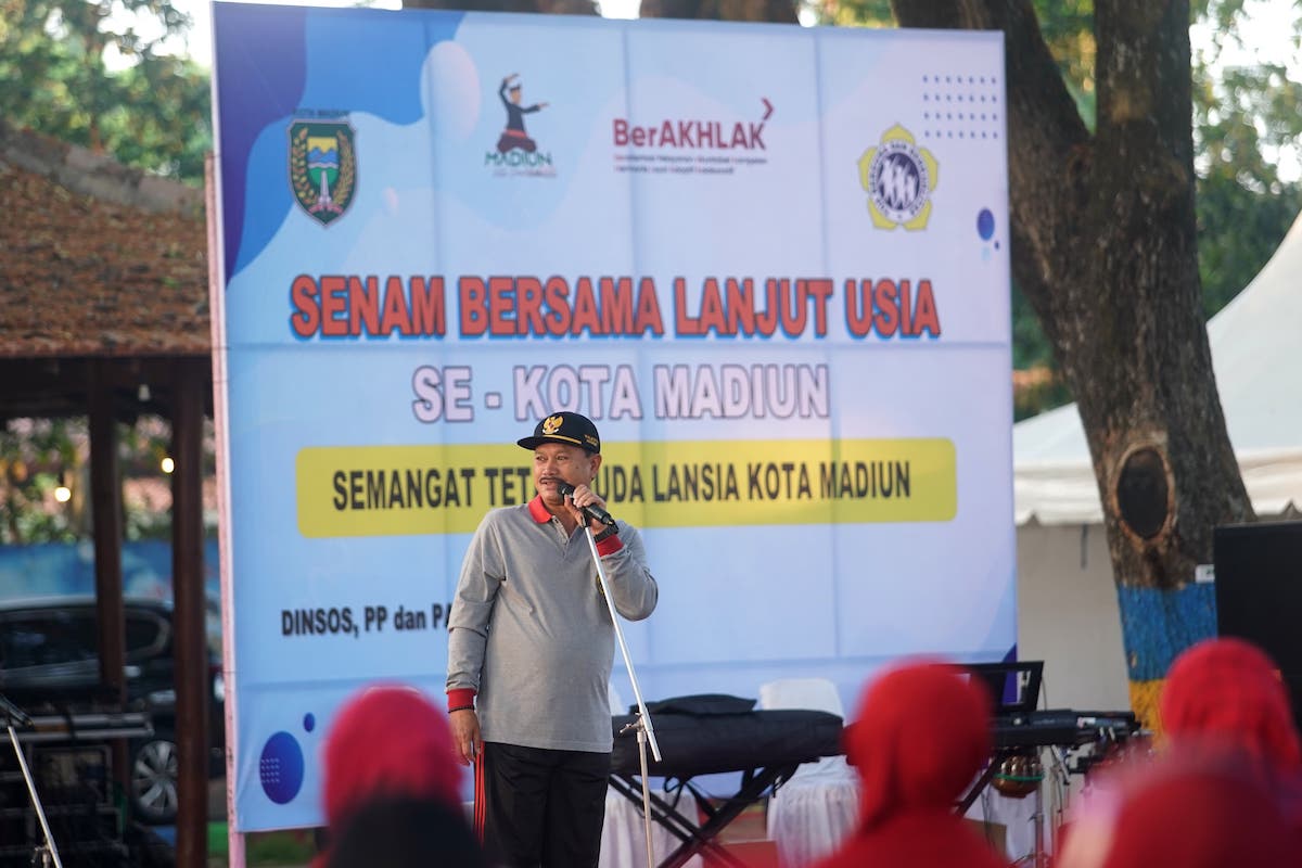 MADIUN - Event Senam Lansia dimanfaatkan Wali Kota Madiun Maidi untuk menyampaikan capaian yang telah diraih Kota Madiun kepada masyarakat.