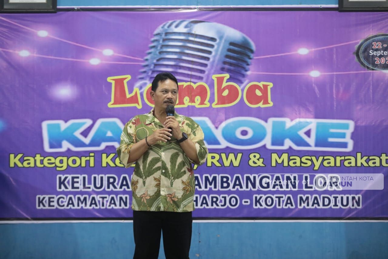 MADIUN - Wali Kota Maidi mengapresiasi kekompakan dan kerukunan warga Kelurahan Nambangan Lor. Hal itu disampaikan orang nomor satu di Kota Madiun itu saat menghadiri final lomba menyanyi kelurahan setempat, Minggu (24/9).