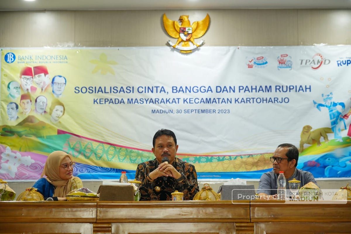 ‘’Siapa yang tidak mau uang. Semua orang suka uang. Hanya orang gila yang tidak mau uang. Tetapi kita juga harus bijak dalam mempergunakannya. Jangan boros. Kalau punya uang lebih ditabung,’’ kata Wali Kota Madiun, Maidi saat Sosialisasi Cinta Bangga dan Paham Rupiah, Sistem Pembayaran Non Tunai dan Literasi Keuangan Digital kepada Masyarakat Kota Madiun bersama Bank Indonesia Kediri di aula Kecamatan Kartoharjo, Sabtu (30/9).