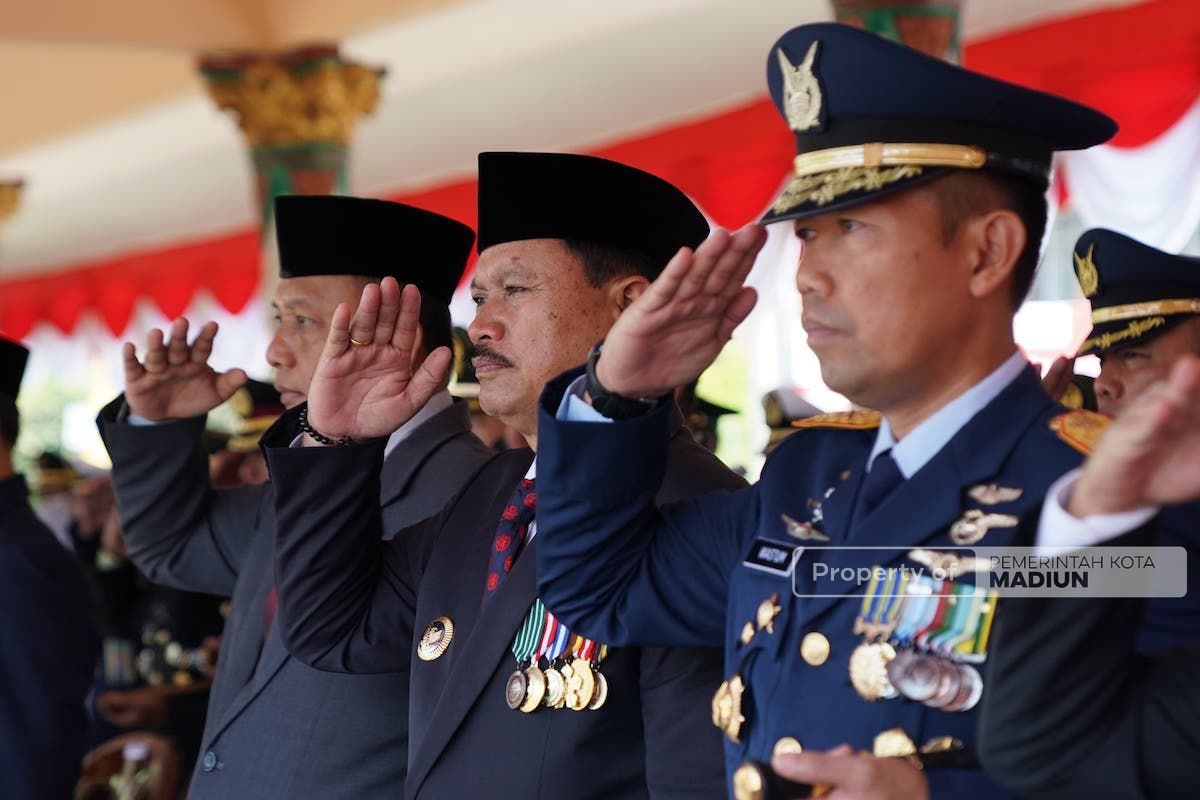 MADIUN – Tentara Nasional Indonesia (TNI) berulang tahun hari ini, Kamis (5/10). Peringatan HUT ke-78 itu pun berlangsung khidmat di Kota Madiun. Bertempat di Alun-alun Kota Pendekar, peringatan diawali dengan upacara kemudian dilanjut dengan berbagai pertunjukkan. Upacara dipimpin Komandan Korem 081 Dhirotsaha Jaya, Kolonel Inf. H Sugiyono dan dihadiri sejumlah pejabat. Tak terkecuali, Wali Kota Madiun, Maidi.