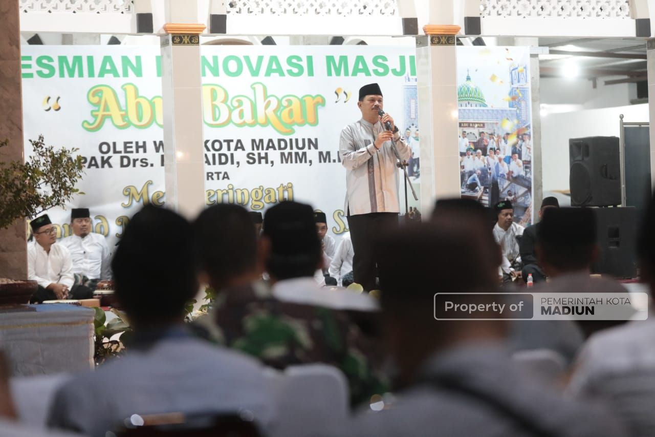 MADIUN - Kita harus terus menebar kebaikan untuk sesama. Pesan itu disampaikan Walikota Madiun Maidi saat menghadiri peresmian renovasi Masjid Abu Bakar, di Kelurahan Pandean, Kecamatan Taman, Kota Madiun, pada Kamis (5/10) malam.