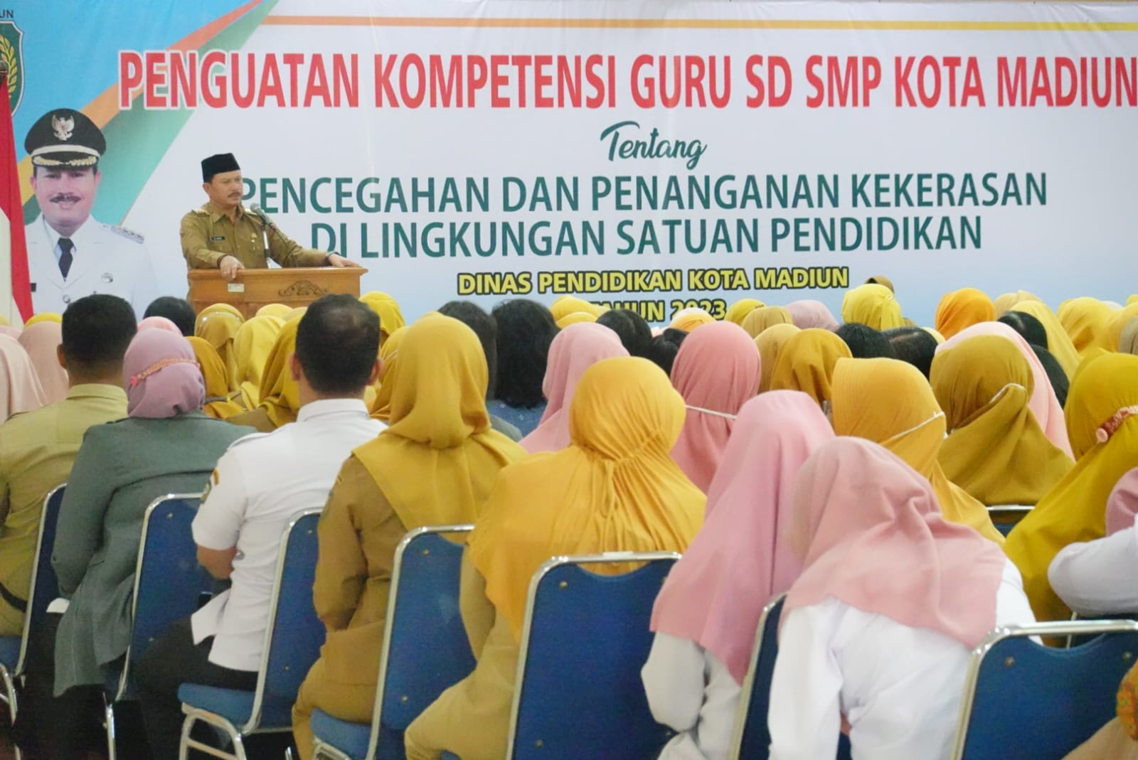 Kegiatan yang mengambil tema pencegahan dan penanganan kekerasan di lingkungan satuan pendidikan itu berlangsung di Wisma Haji Kota Madiun, Senin (9/10). Sebanyak 414 kepala sekolah dan guru SD-SMP negeri maupun swasta hadir dalam kegiatan tersebut.