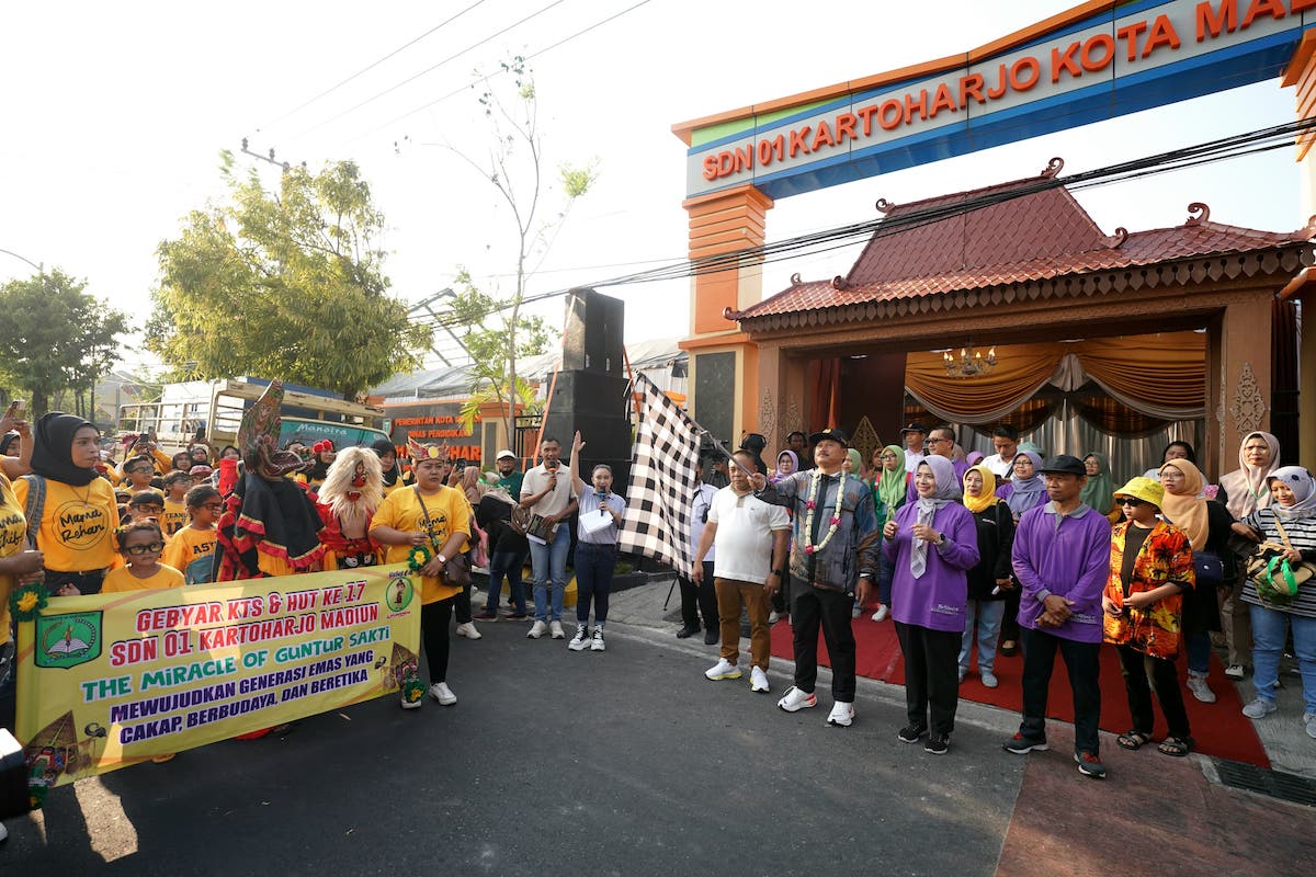 MADIUN - Wali Kota Madiun Maidi menghadiri gebyar kegiatan tengah semester (KTS) sekaligus peringatan HUT ke-17 SDN 01 Kartoharjo, Rabu (11/10). Dalam kesempatan tersebut, orang nomor satu di Kota Madiun itu memberikan hadiah spesial bagi sekolah yang dikenal dengan sebutan Guntur itu.