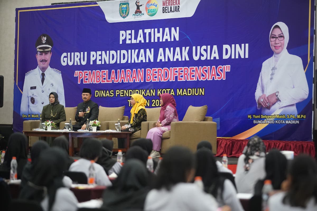 MADIUN – Pendidikan Anak Usia Dini (PAUD) salah satu jenjang penting dalam tahapan pendidikan. Karenanya, pendidikan pada saat usia dini harus optimal. Upaya itu terus dilakukan Pemerintah Kota Madiun melalui pelatihan dan pembinaan. Salah satunya, kepada guru sekolah PAUD di Kota Pendekar. Wali Kota Madiun, Maidi pun hadir sebagai narasumber dalam kegiatan tersebut. Maklum, Wali Kota Madiun yang satu ini memang berangkat dari tenaga pendidik sebelumnya.