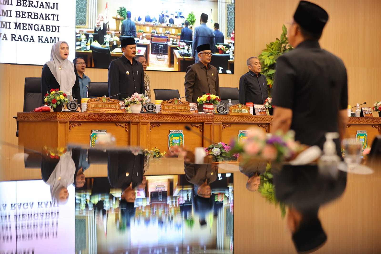 MADIUN – Raperda inisiatif DPRD tentang Perubahan atas Perda Kota Madiun nomor 6/2009 tentang Sistem Perencanaan Pembangunan dan Penganggaran Daerah akhirnya klir. Wali Kota Madiun Maidi menyetujui keberadaan Raperda tersebut. Hal itu mengemuka dari rapat paripurna pengambilan keputusan yang didahului dengan pengambilan keputusan yang didahului dengan penyampaian pendapat akhir Wali Kota Madiun di DPRD, Jumat (13/10).