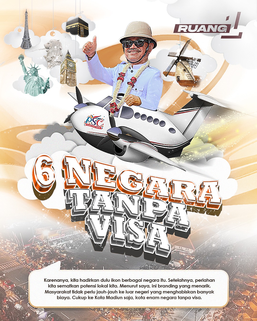 Memajukan kota ini tidak cukup hanya mengandalkan potensi yang ada. Ikon pendekar mungkin menarik bagi masyarakat kita. Tetapi belum tentu menarik bagi masyarakat luar. Padahal, sasaran kita adalah menarik masyarakat luar itu untuk datang. Karenanya, kita hadirkan dulu ikon berbagai negara itu. Setelahnya, perlahan kita sematkan potensi lokal kita. Menurut saya, ini branding yang menarik. Masyarakat tidak perlu jauh-jauh ke luar negeri yang menghabiskan banyak biaya. Cukup ke Kota Madiun saja, kota enam negara tanpa visa.