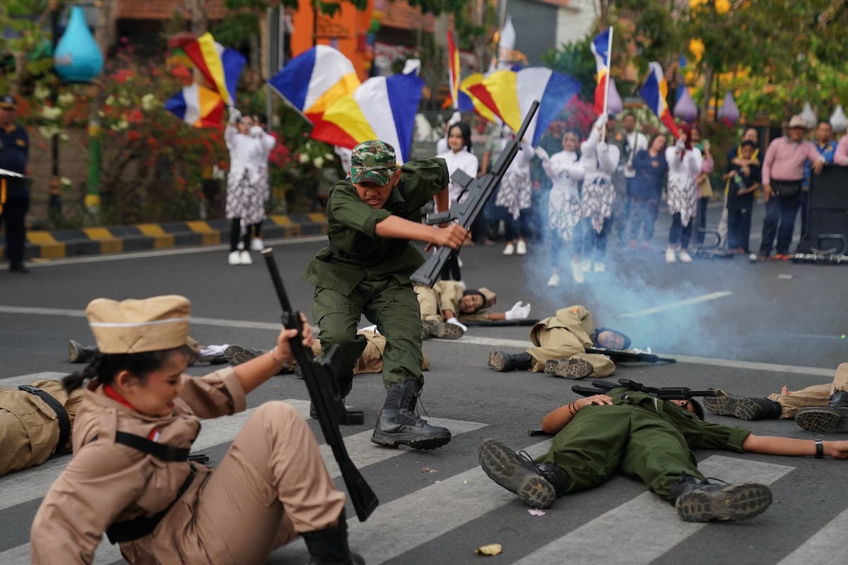 MADIUN – Parade Senja 2023 Kota Madiun resmi berakhir. Gelaran lomba drumband tingkat SMP dan PBB kreasi tingkat SMA sederajat itu di tutup dengan penampilan grup drumband Gita Genie Pelajar SMPN 12 Kota Madiun dan PBB Kreasi Satkibra SMKN 1 Kota Madiun. Parade senja pamungkas itu juga sekaligus menjadi ajang penyerahan piala dan reward kepada penampil terbaik selama gelaran.