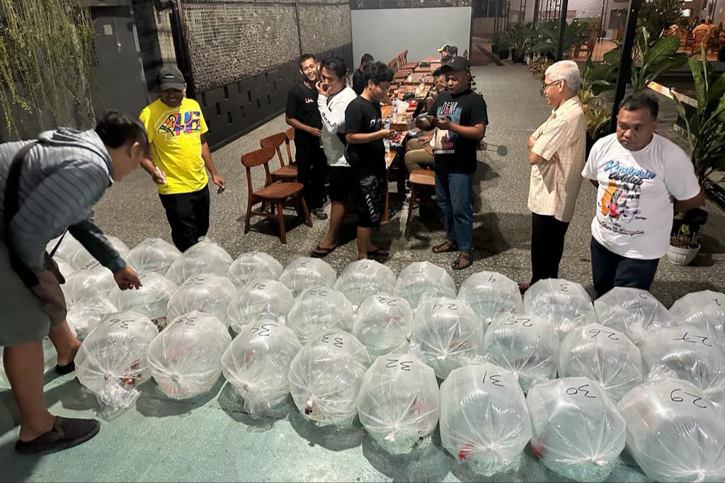 MADIUN - Pecinta ikan koi di Kota Madiun memang tidak ada habisnya. Bahkan, berbagai kegiatan terus mengemuka. Terbaru, Madiun Ulam Koi Community (MUKC) kembali menggelar Keeping Contest, Minggu (22/10) malam. Keeping Contest kali keempat yang berlangsung di angkringan AE88 Pilangbango Kota Madiun itu setidaknya diikuti sebanyak 45 ekor. Biarpun kontes skala kecil, kegiatan diikuti pecinta koi dari berbagai daerah sekitar. Di antaranya, Ponorogo, Magetan, dan Ngawi.