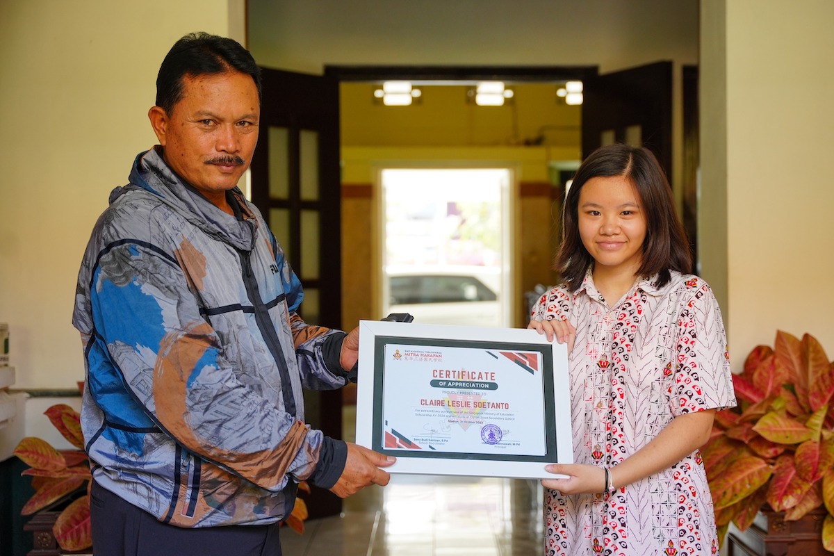 MADIUN – Salah seorang siswa SMP Nasional Tiga Bahasa Mitra Harapan Madiun mendapatkan beasiswa dalam seleksi pelajar ASEAN ke Singapura. Dia adalah Claire Leslie Soetanto. Siswi kelas IX di lembaga pendidikan yang berada di Jalan Soekarno-Hatta tersebut.