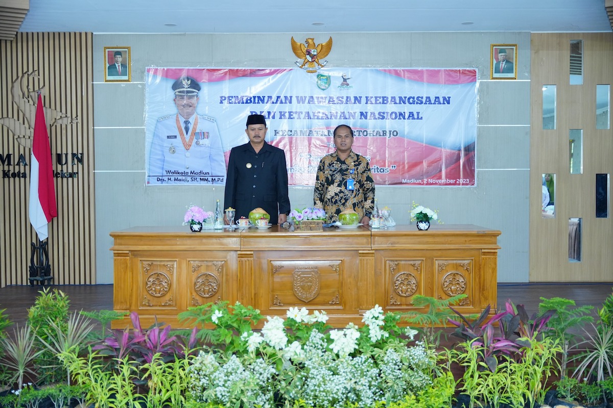 MADIUN - Wali Kota Maidi menjadi narasumber dalam acara rapat koordinasi pembinaan wawasan kebangsaan dan ketahanan nasional di lingkungan Kecamatan Kartoharjo, Kamis (2/11).