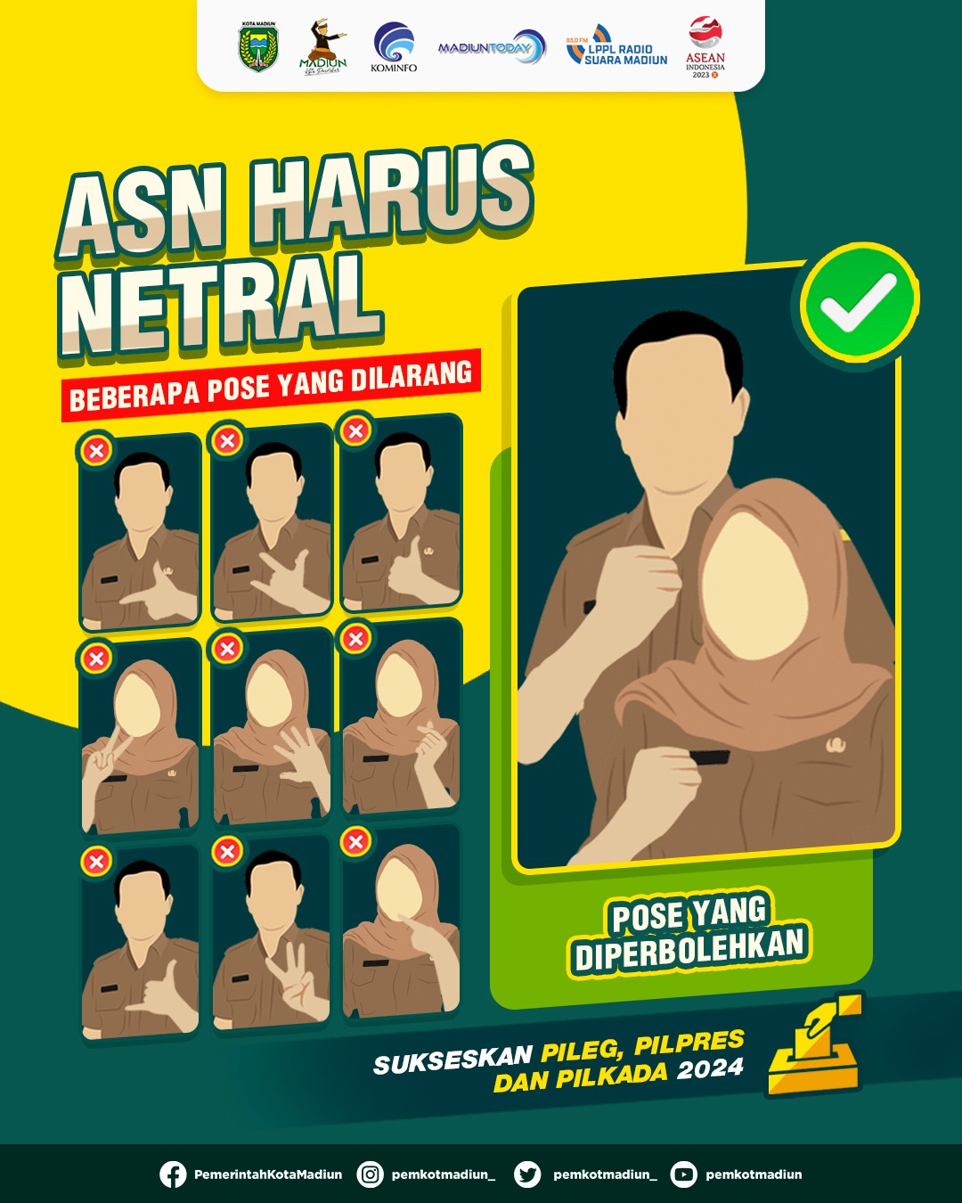 Apalagi, saat ini KPU Kota Madiun telah mengumumkan daftar calon tetap anggota DPRD Kota Madiun pada Pemilu 2024. Karenanya, ASN diminta untuk menjauhi hal-hal yang berbau kampanye. Serta, lebih memperhatikan hal-hal kecil yang mengarah atau berpotensi kampanye.