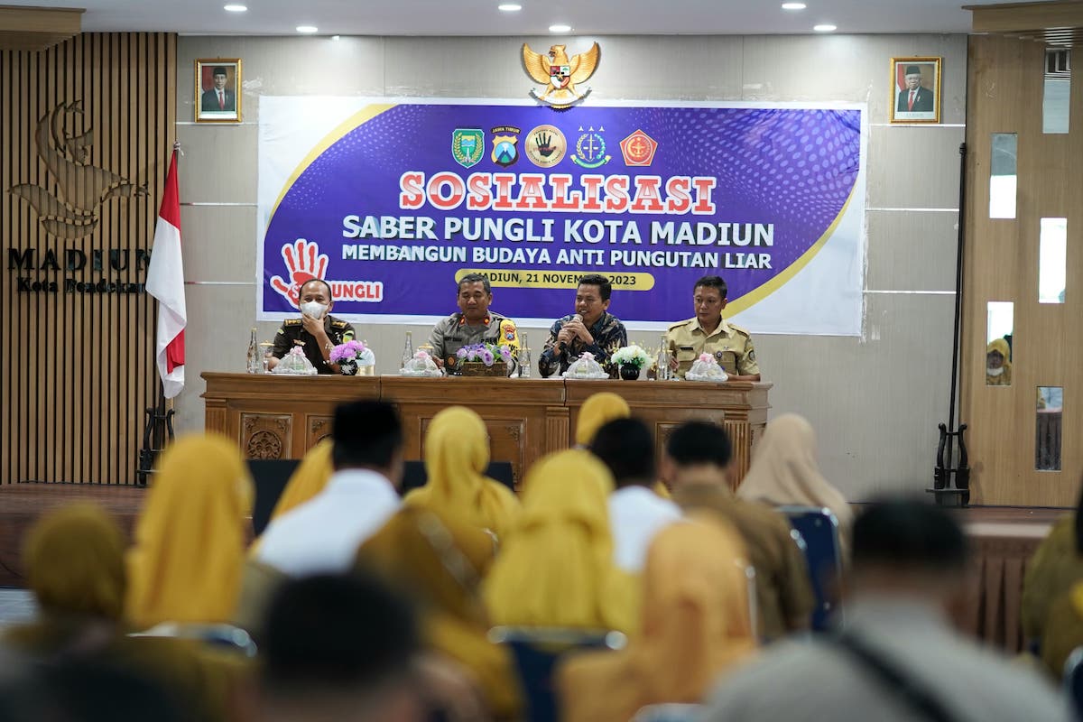 MADIUN - Pungutan liar (Pungli) bisa terjadi dimanapun dan kapanpun. Perlu pencegahan dan antisipasi agar hal tersebut tak terjadi. Maka dari itu, Tim Sapu Bersih Pungutan Liar (Saber Pungli) Kota Madiun menggelar sosialisasi bagi kepala sekolah jenjang SD hingga SMA sederajat di Kota Madiun.