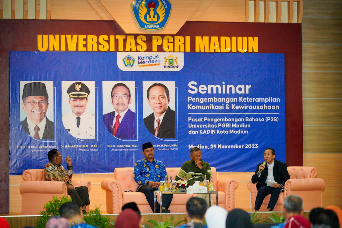 Sementara itu, seminar yang diikuti oleh mahasiswa, Kadin Kota Madiun, pelaku UMKM, dan tenaga pendidik di wilayah Madiun Raya ini juga diisi oleh Guru Besar Unipma, Prof. Parji sebagai moderator, Anggota DPR RI Komisi V Suhartono sebagai narasumber, dan Founder Harian Disway Prof. Dr. (HC) Dahlan Iskan sebagai narasumber utama. (Rams/irs/diskominfo)