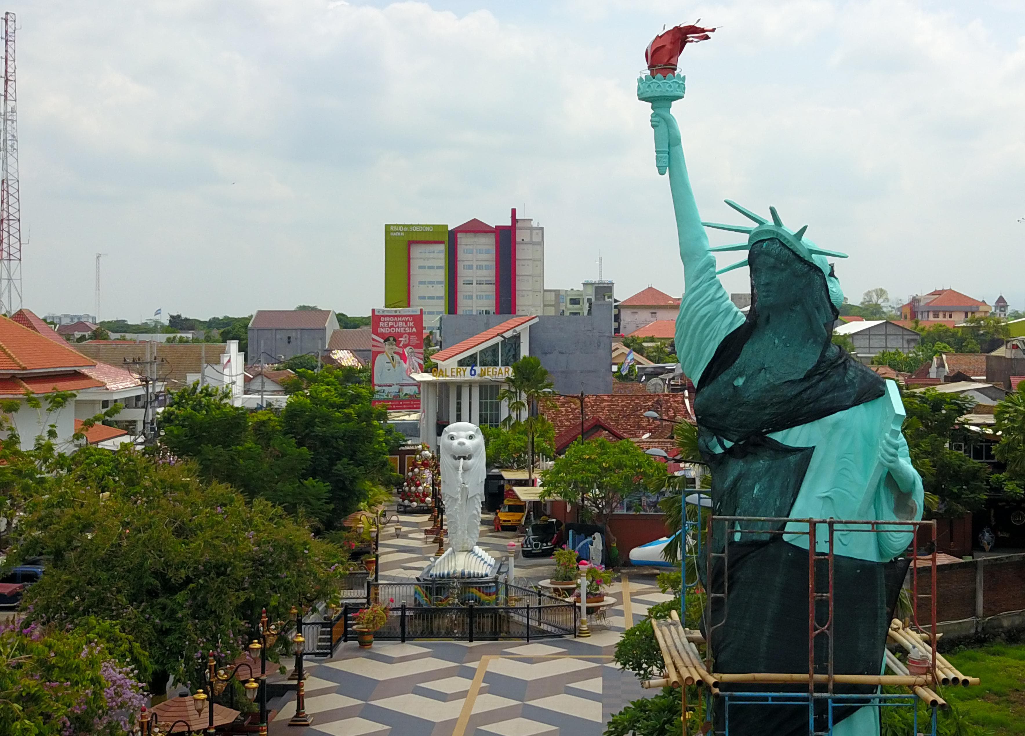 MADIUN – Ikon replika patung Liberty bakal segera mempercantik kawasan Pahlawan Street Center (PSC). Pasalnya, pembangunan sudah nyaris 100 persen. Pembangunan patung Liberty setinggi 16,75 meter itu bakal diresmikan dalam waktu dekat.