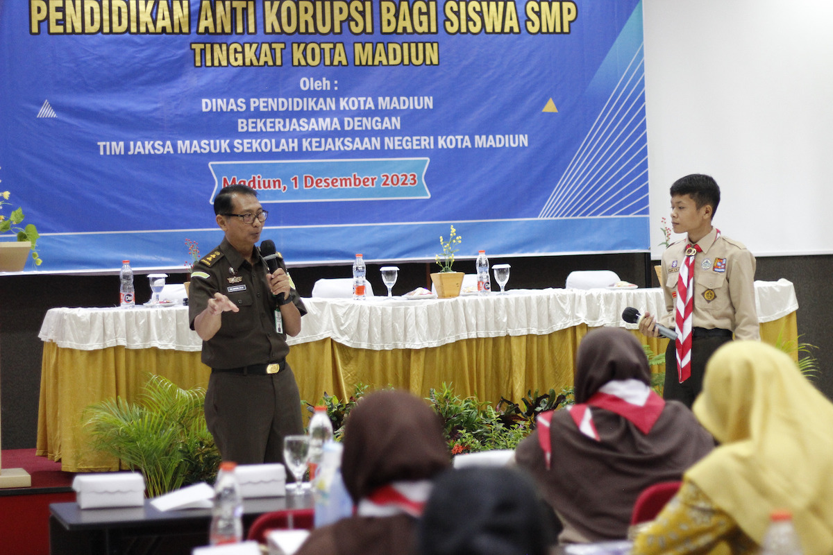 "Tindakan curang seperti membolos, mencontek juga termasuk korupsi," ujar Kasi Intelijen Kejari Kota Madiun, Dicky Andi Firmansyah saat mengisi di hadapan siswa SMP dan guru pendamping se-Kota Madiun.