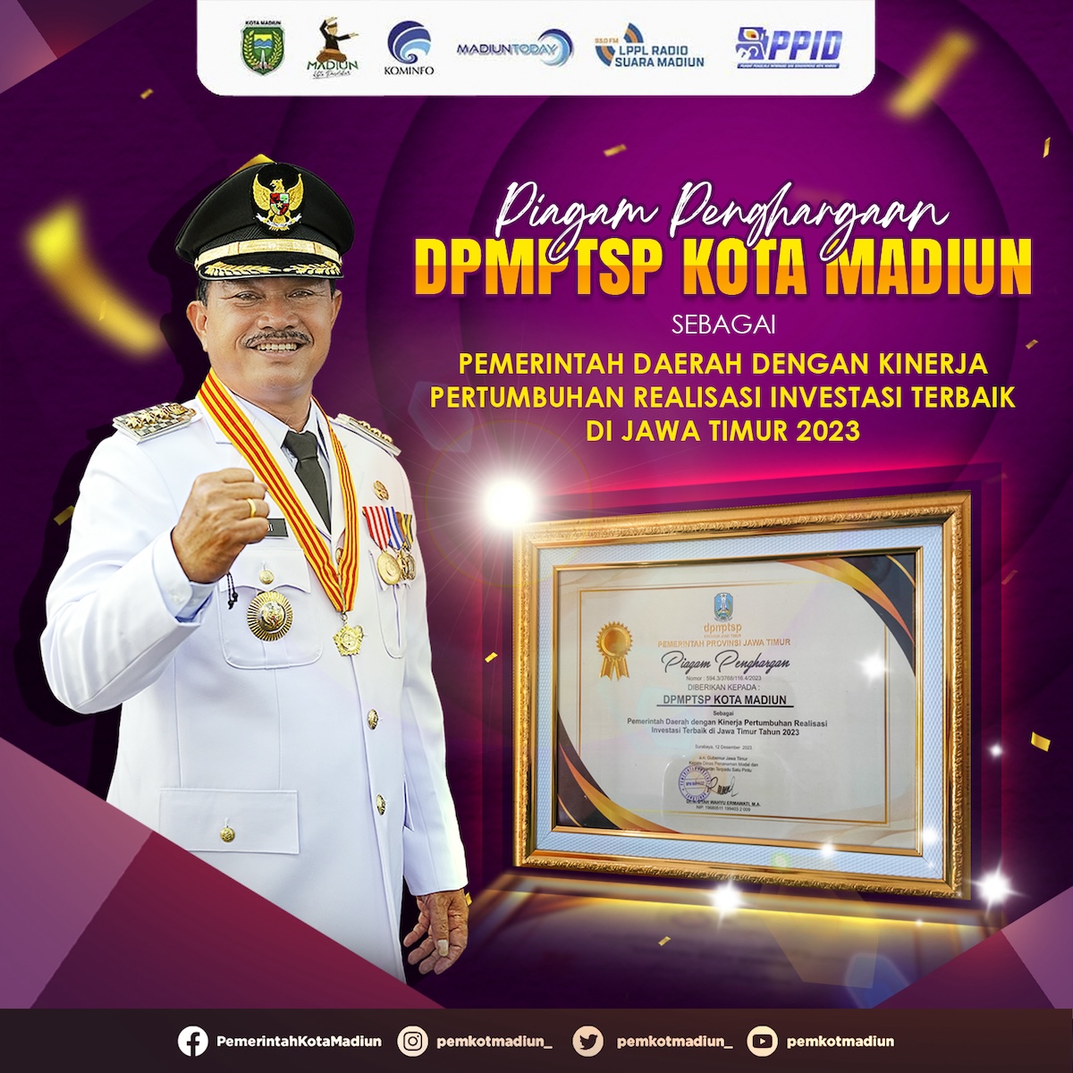 Masuk 10 Besar Pertumbuhan Realisasi Investasi Terbaik Jawa Timur, Kota Madiun Tambah Satu Penghargaan Lagi