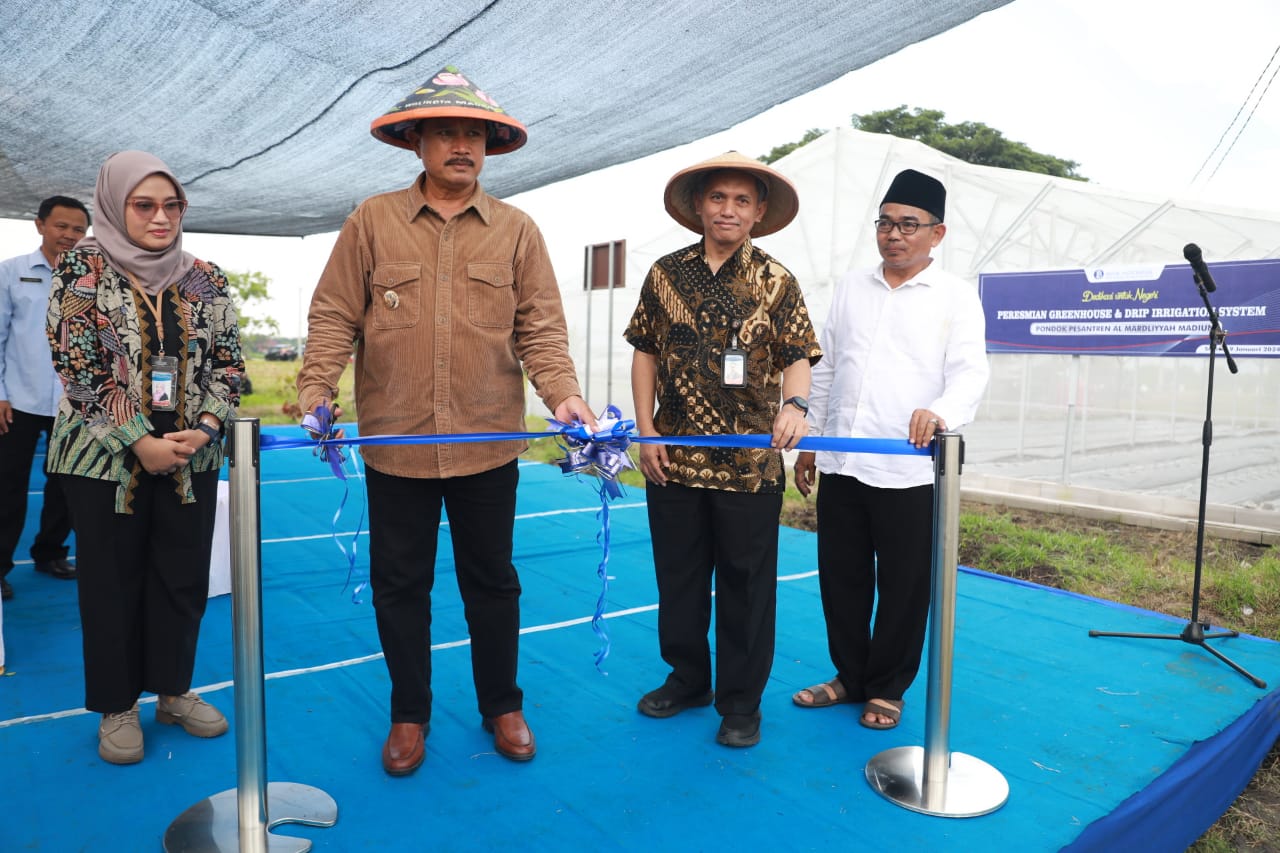 MADIUN - Wali Kota Madiun, Dr.Maidi meresmikan greenhouse & drip irrigation system yang dimiliki Pondok Pesantren Al Mardliyyah Madiun berkat bantuan dari Kantor Perwakilan Bank Indonesia Kediri, Selasa (9/1).