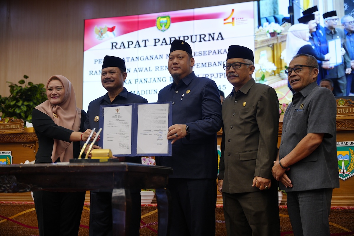 ‘’Pemerintah daerah tidak terlepas dari pemerintah provinsi maupun pusat. Artinya, RPJPD ini juga merupakan sinkronisasi program pemerintah provinsi dan pemerintah pusat. Semuanya harus linear,’’ kata Wali Kota Madiun, Dr. Maidi usai Rapat Paripurna Penandatanganan Nota Kesepakatan Rencana Awal RPJPD Kota Madiun tahun 2025-2045 di gedung DPRD Kota Madiun, Jumat (26/1).