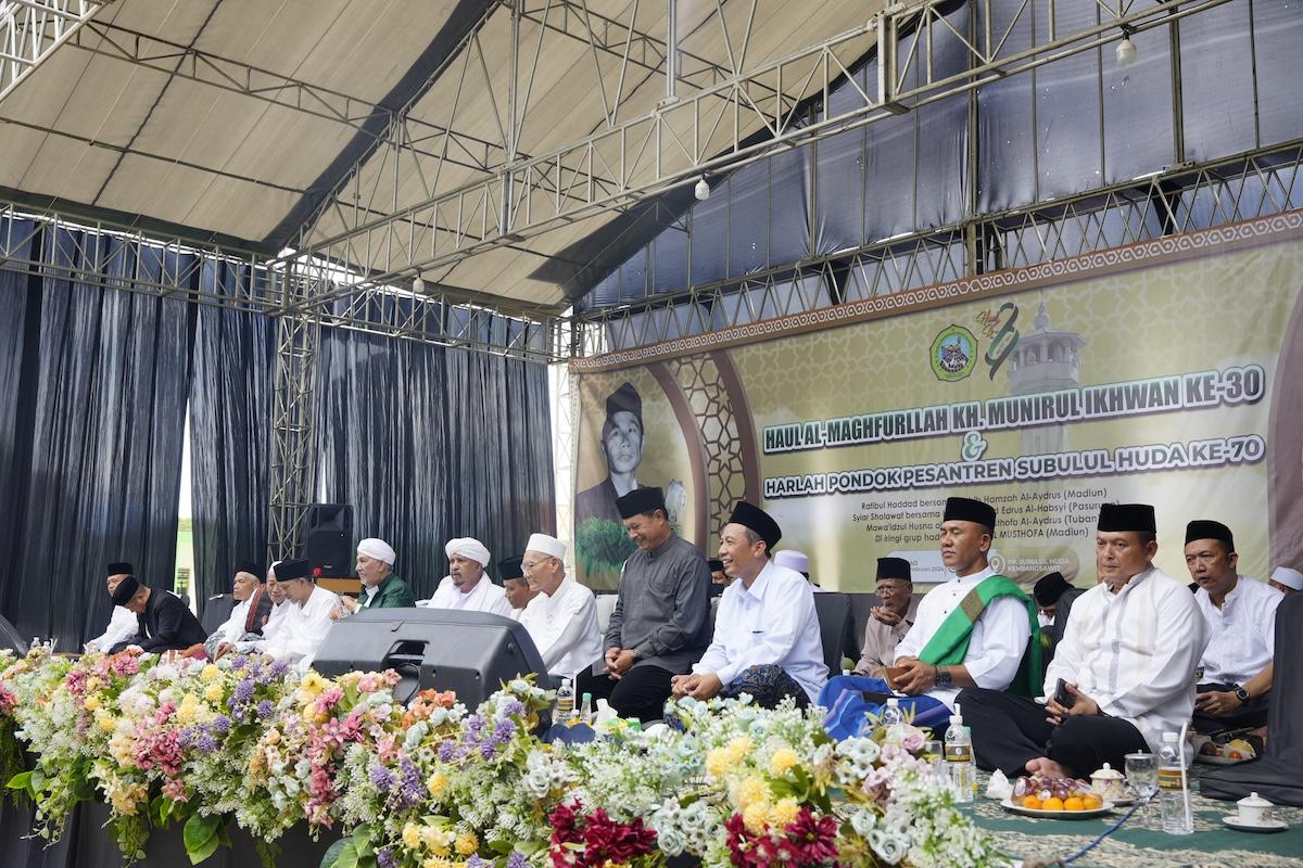 MADIUN – Puncak peringatan Haul ke-30 KH Munirul Ikhwan berlangsung khidmat, Minggu (4/2). Peringatan sekaligus Harlah ke-70 Pondok Pesantren Subulul Huda tersebut dihadiri ribuan jamaah hingga para pejabat daerah dan tokoh penting. Tak terkecuali Wali Kota Madiun, Dr. Maidi. Orang nomor satu di Kota Pendekar tersebut tampak khusyuk mengikuti gelaran acara demi acara yang berlangsung di halaman Ponpes Subulul Huda, Kembang Sawit, Kebonsari, Kabupaten Madiun itu.