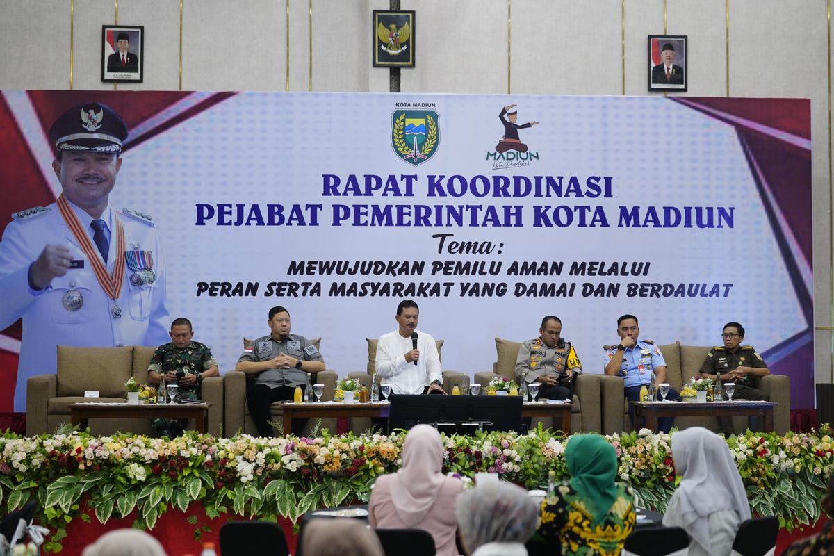 MADIUN – Sehari lagi seluruh masyarakat Indonesia akan menyelenggarakan pesta demokrasi dalam pemilihan umum (Pemilu) 2024. Tak terkecuali di Kota Madiun. Untuk itu, Forkopimda di wilayah setempat terus berupaya untuk menjaga kondusivitas kota.