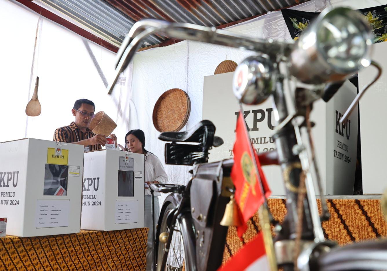 TPS yang satu ini tak kalah unik dengan menghadirkan nuansa tempo dulu. Seperti di TPS 13 Nambangan Lor yang menghadirkan kesan jadul. Tak heran, pemilih pun diajak untuk bernostalgia akan masa lalu. Luar biasa ya upaya panitia pemungutan suara di Kota Madiun ini. Upaya mereka untuk mensukseskan Pemilu ini tentu patut mendapatkan apresiasi. Kalau di TPS kalian mencoblos, ada hal unik apa nih? Tulis di kolom komentar ya..