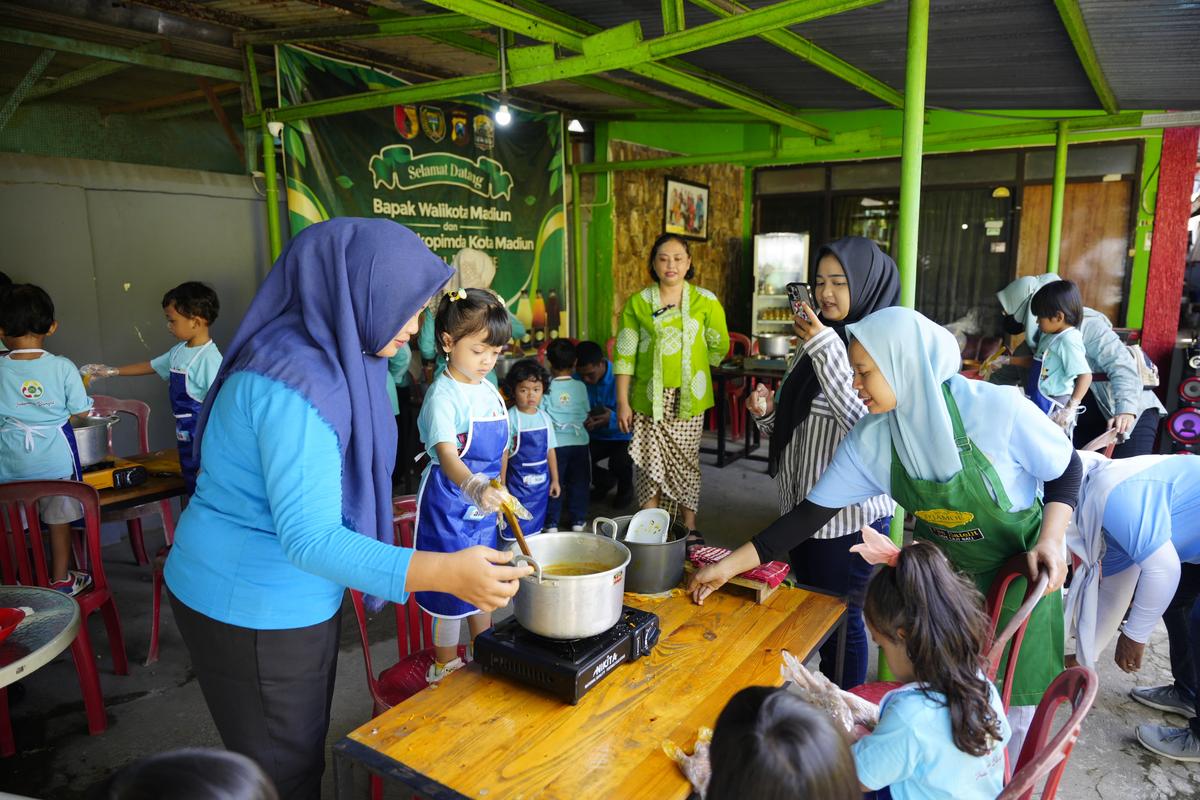 MADIUN - Suara riuh dan aroma khas jamu menghiasi plataran rumah produksi salah satu produsen jamu tradisional yang ada di Jalan Ranumenggalan, Kota Madiun. Suara itu berasal dari anak-anak playgroup dan TK dari Cendeki Kids School (CKS) yang tengah belajar membuat jamu tradisional.